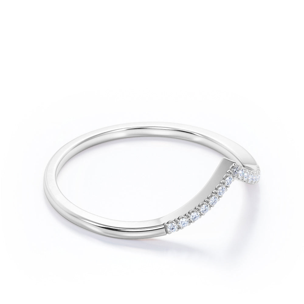 V-Curved 0.15 TCW Round Shape Pave Wedding Ring