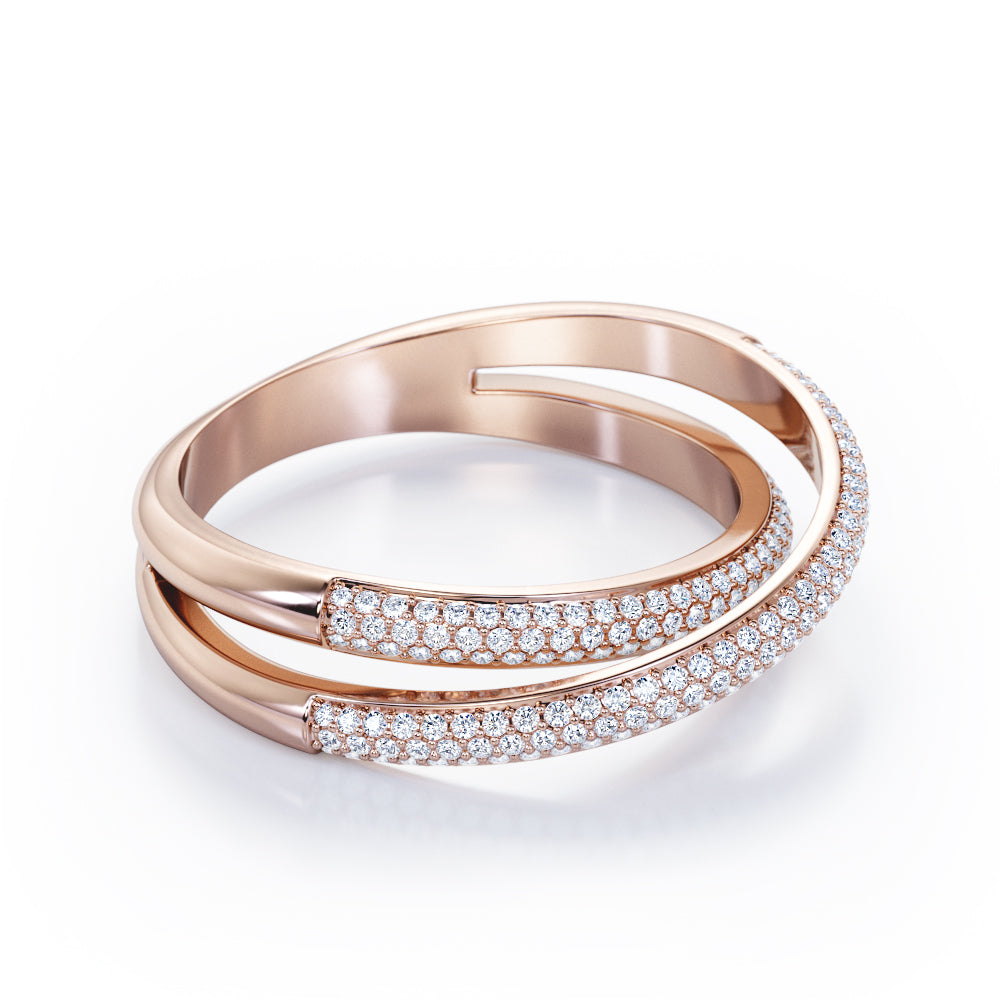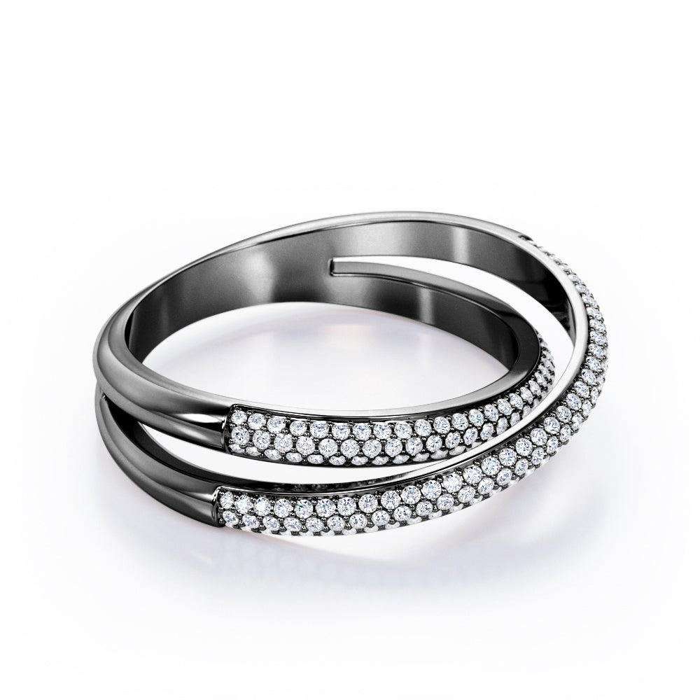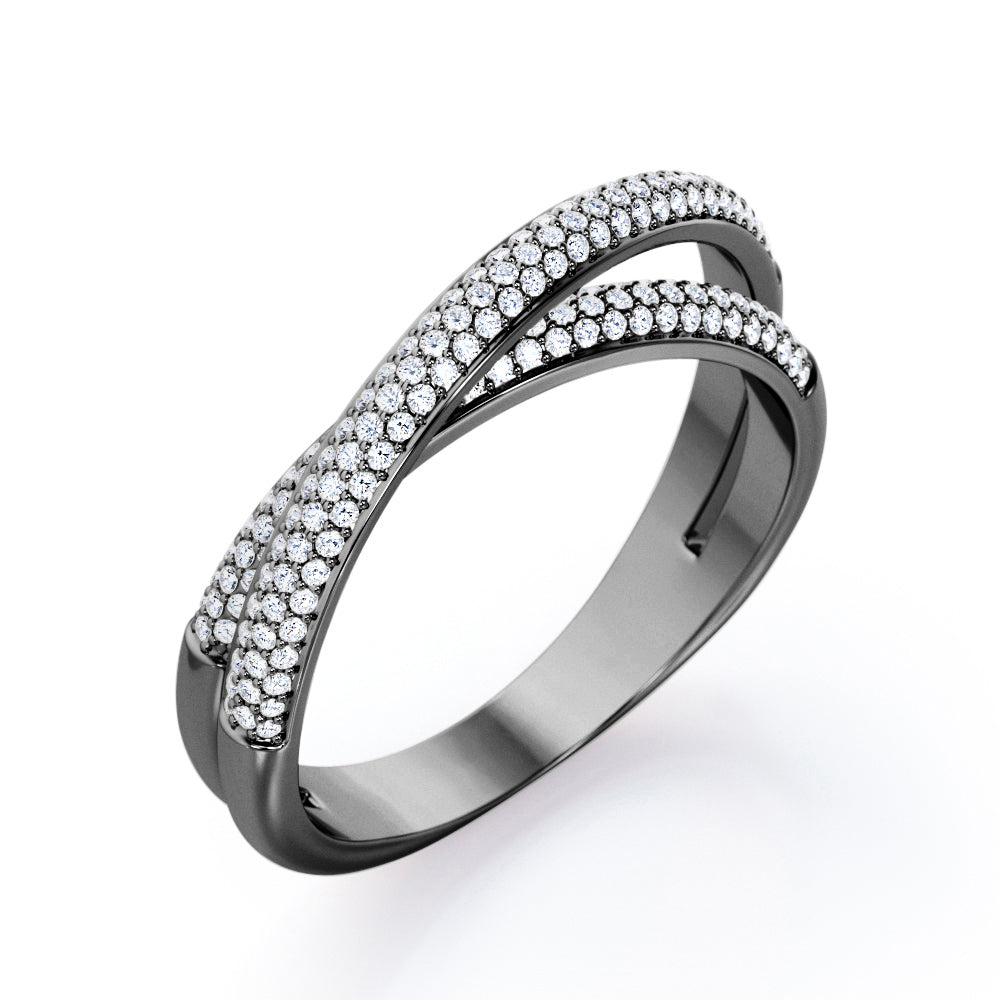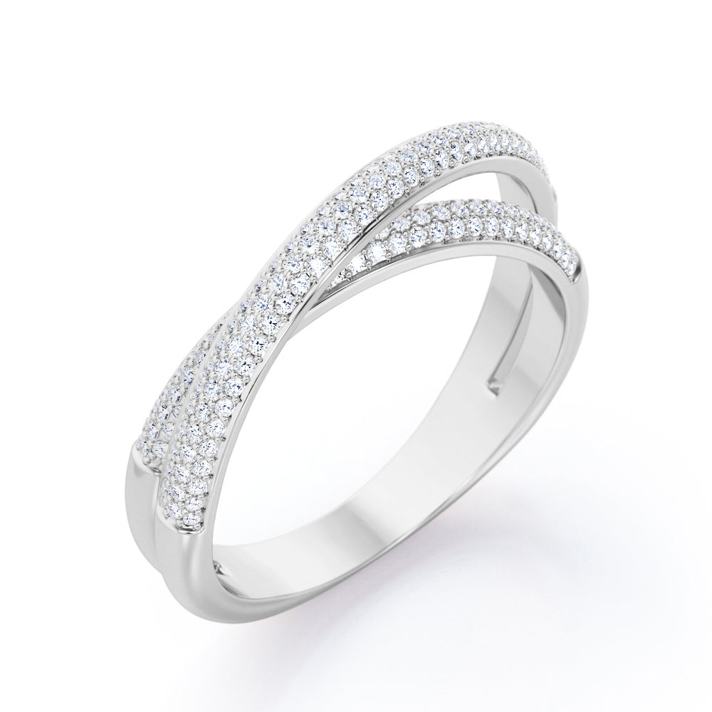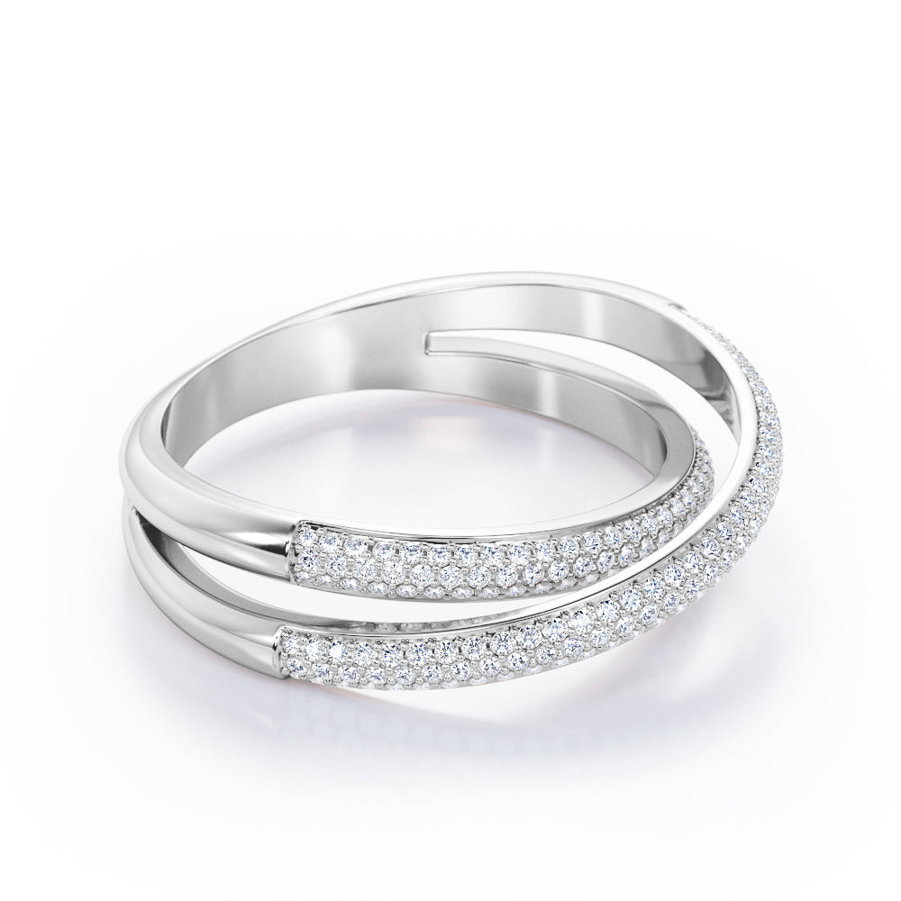 Crossover Double-Strand 0.25 TCW Round Shape Diamond Micro Pave Stackable Ring in 10K White Gold
