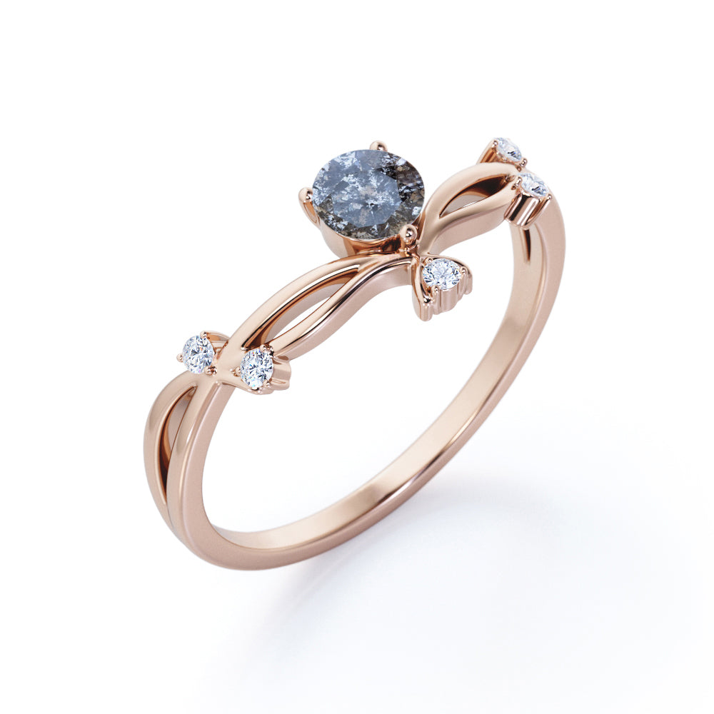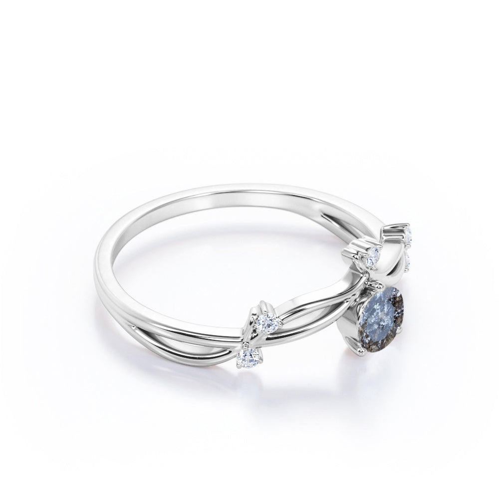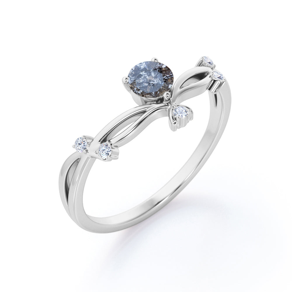 IMPORTANT NOTE: Since each Salt and Pepper Diamonds is one of a kind, the actual color of it may vary from the one that is pictured above. Thanks to its enchanting black and white inclusions, this Crown Design Solitaire 0.65 Carat Round Cut Natural Icy Grey Salt and Pepper Diamond Twist Minimalist Engagement Ring will be as unique as its wearer. This lovely ring features .50 carat round cut natural Salt and Pepper Diamond and .15 carat real side Diamond for gold ring and Moissanite for silver ring. This dainty promise ring can be customized to either 10k, 14K and Gold over Silver and either Black Gold, Rose Gold, White Gold or Yellow Gold. Also, as your satisfaction is our most priority, we will do our best to have your handmade jewelry be carefully and beautifully crafted by our expert jewelers. The order also comes with a 30-day full refund policy. Ideal gift for any special occasion, this ring can be gifted on birthday, anniversary, Valentine's day, Christmas, and proposal. With its unique appearance, you can be sure that no any other rings will look exactly alike. If you are looking for alternate gemstone, this Salt and Pepper Diamond is right for you. It suits a variety of ring styles and easily adapted to suit any type of fashion sense. Design and create your very own unique ring that makes you outstanding from the rest! Its inclusions will distinguish your ring offering a unique look on your finger . Impress your special someone with this beautiful and affordable ring. Its inclusions reminds us that beauty doesn't always lie in perfection. With its mesmerizing salt and pepper inclusions, it is sure to enchant your special someone with gracefulness.
