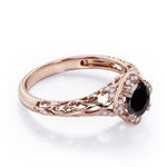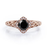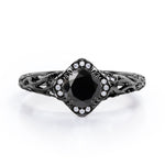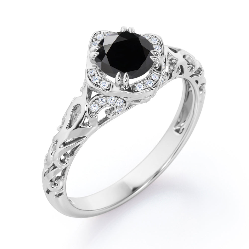 Cushion Framed 1.10 Carat Round Cut Black Diamond Halo Art Deco Engagement Ring In White Gold