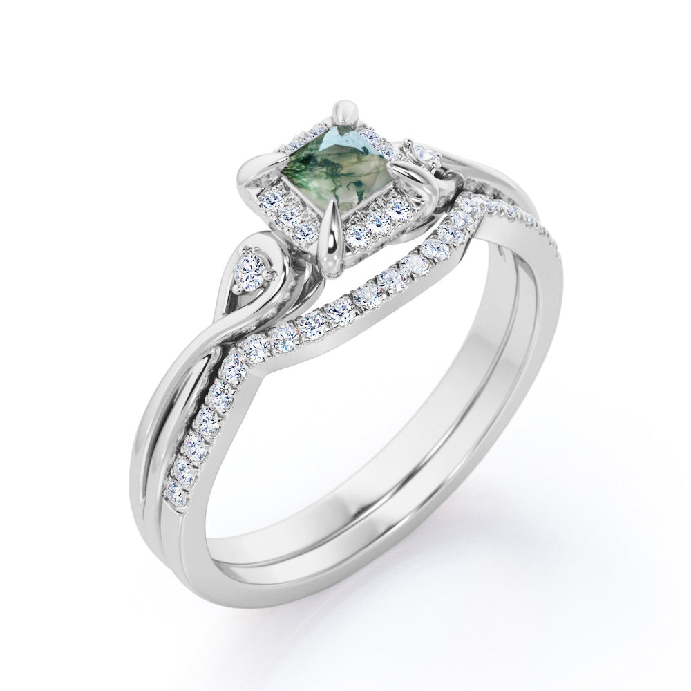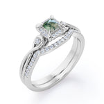 Infinity 0.85 TCW Princess Moss Agate Split Shank Bridal Set