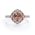 This is a very beautiful handmade Classic style Morganite and Diamond Engagement Ring for women. The ring is made with real peach pink morganite, real diamonds and on real gold. The handcrafted engagement ring features 1 carat cushion cut peach pink morganite in the center, surrounded with 0.75 carat of diamonds, for a total carat weight of 1.25 Carats.