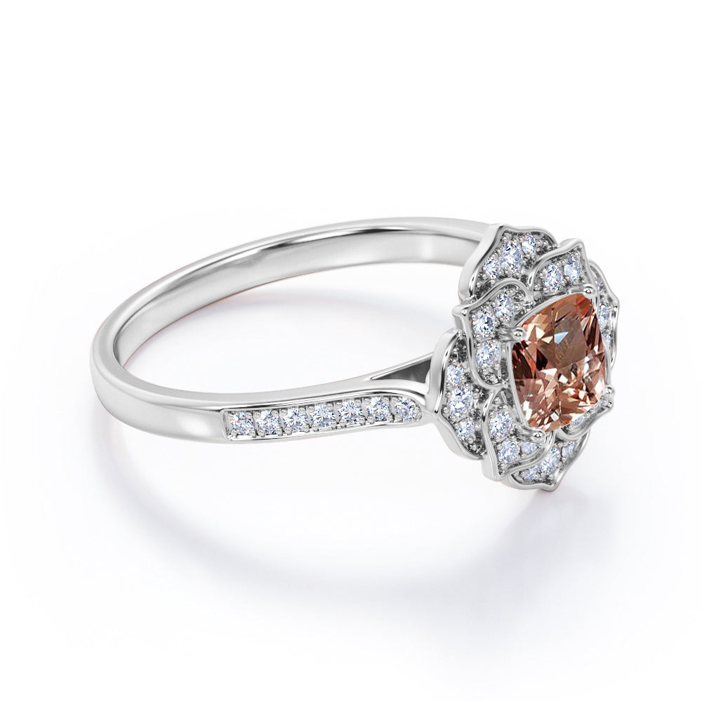 Customized 1.75 Carat Cushion Cut Peach Morganite and Diamond Engagement Ring in 10k White Gold Classic Ring