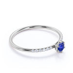 The vintage blue Australian sapphire ring is quite amazing, since majority of us likes to see a vintage look, especially with an engagement ring that is absolutely beautiful. If you don't want a modern blue sapphire ring, this classic blue sapphire ring is the best for you. It reminisce your past and those times when you and her are still young lovers. This small petite blue sapphire ring features an approximately .35 carat round cut certified blue sapphire, surrounded by .15 carat certified diamond accent, for a total weight of 0.50 carats.