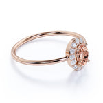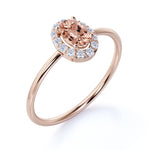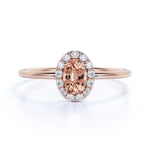 Dainty 0.65 Carat Oval Shape Pink Light Morganite and Diamond Halo Classic Engagement Ring in Rose Gold