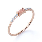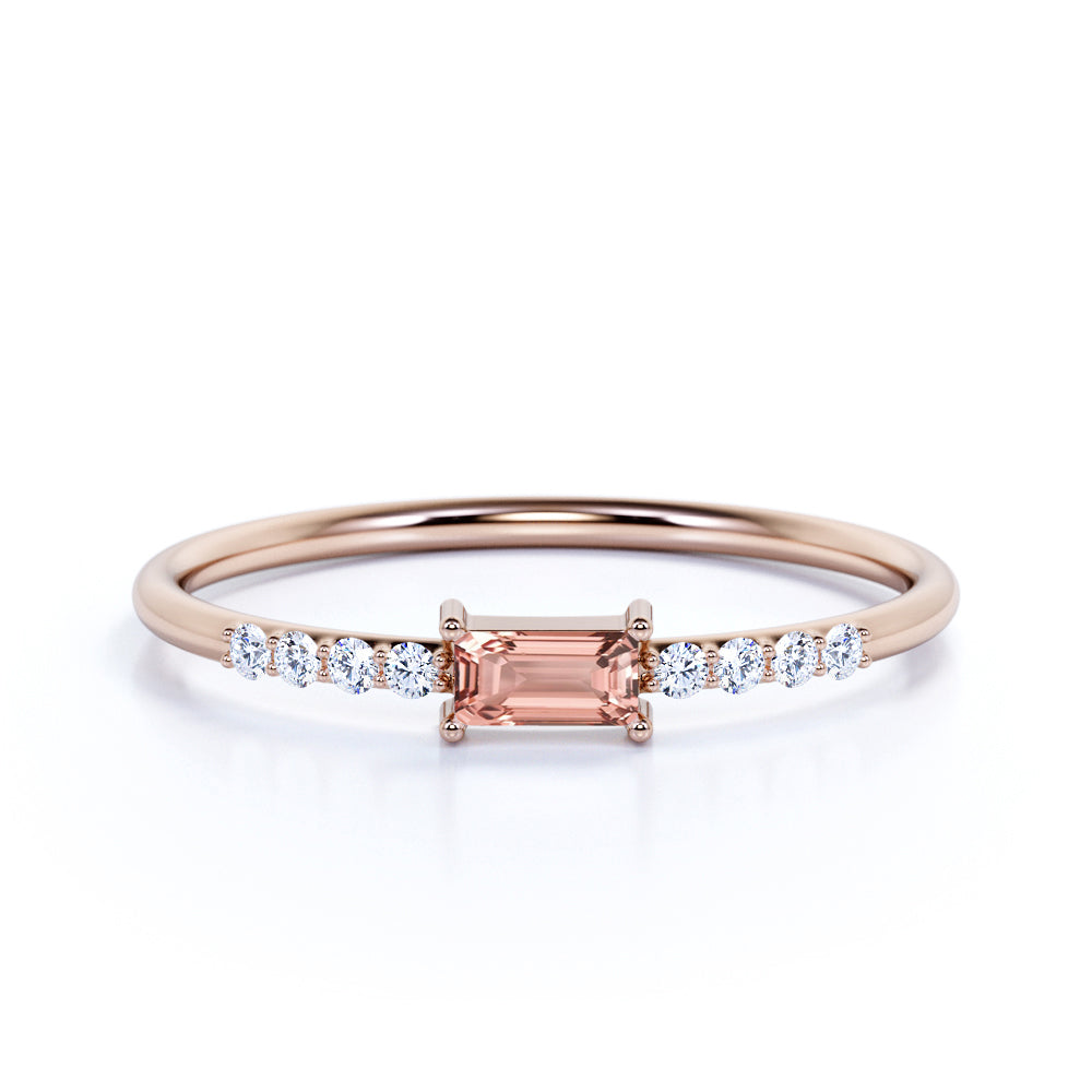 Dainty East West 0.45 Carat Emerald Cut Pink Morganite and Pave Diamond Engagement Ring in Rose Gold