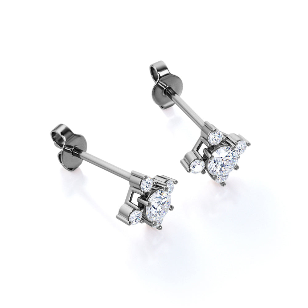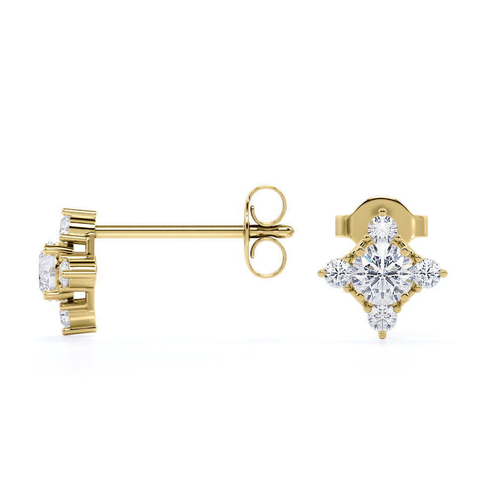Dainty Sunburst 1.15 Carat Round Certified Moissanite and Diamond Shared Prong Stud Earrings in Yellow Gold