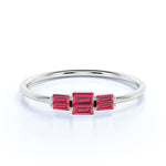 Dainty Trio Stone 0.75 Carat Baguette Cut Ruby and Vintage Stackable Ring Band in White Gold