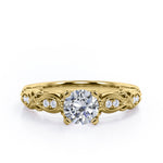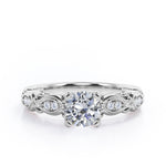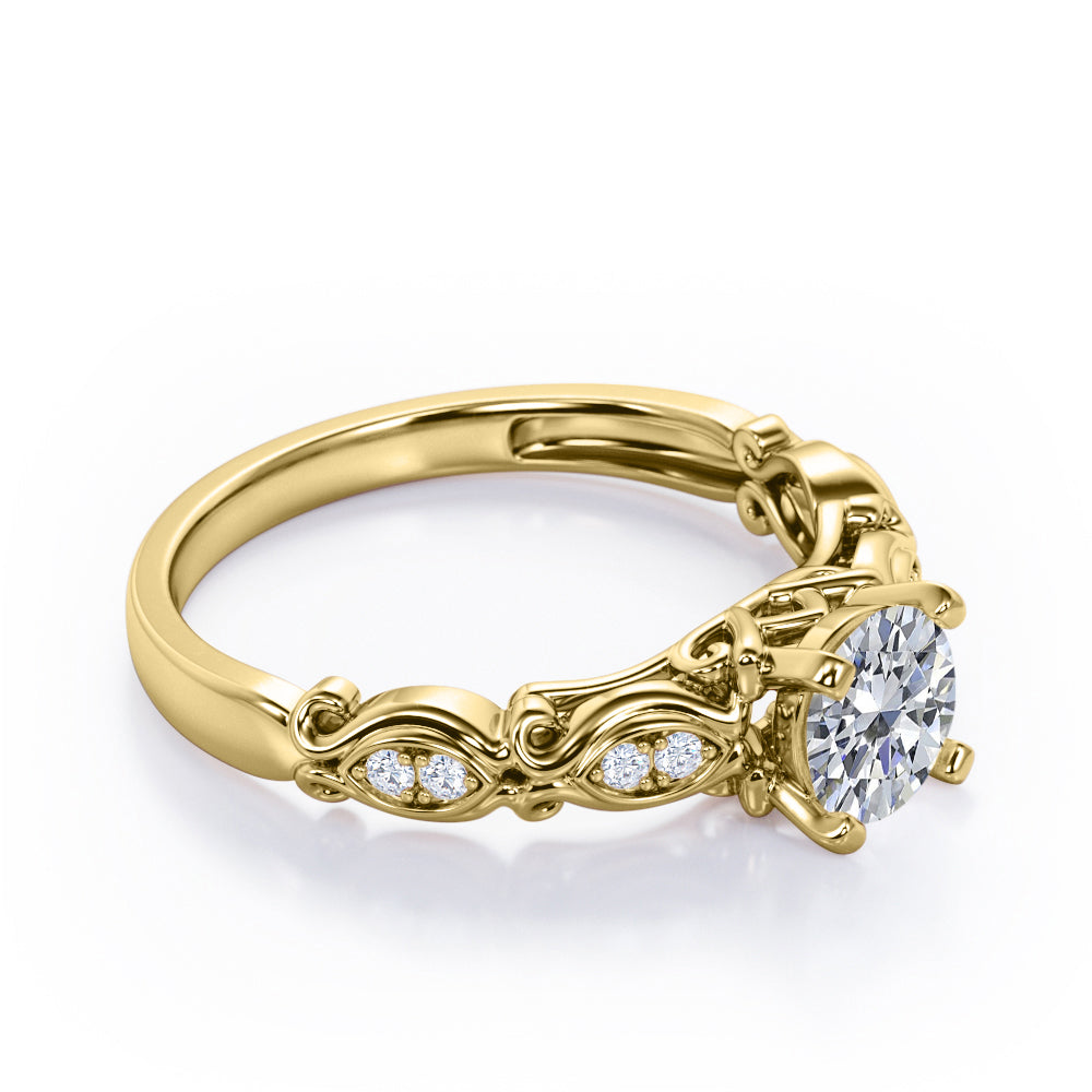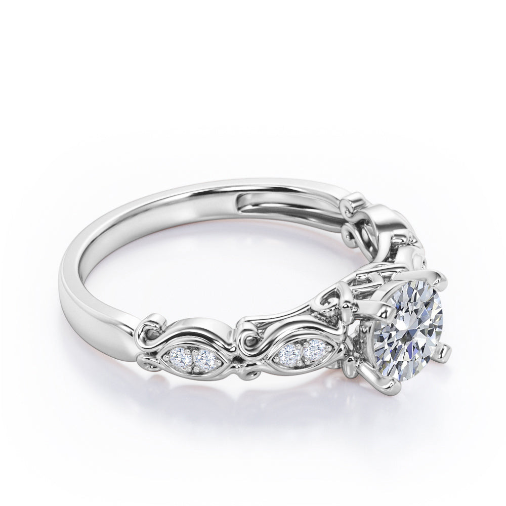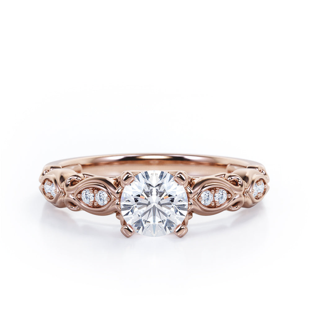 Decorative Basket Prong 0.5 carat Round Moissanite and Diamond Nature-Inspired Ring in Rose Gold