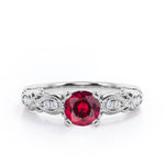 Decorative Basket Prong 0.5 carat Round Lab Ruby and Diamond Nature-Inspired Ring in Rose Gold