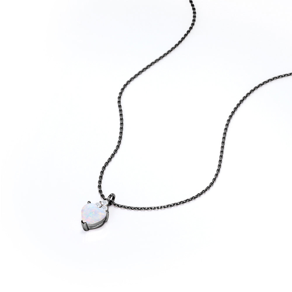 Delicate 1.05 Carat Heart Shaped Ethopian Opal and Diamond Three Prong Pendant Necklace In White Gold For Her.