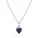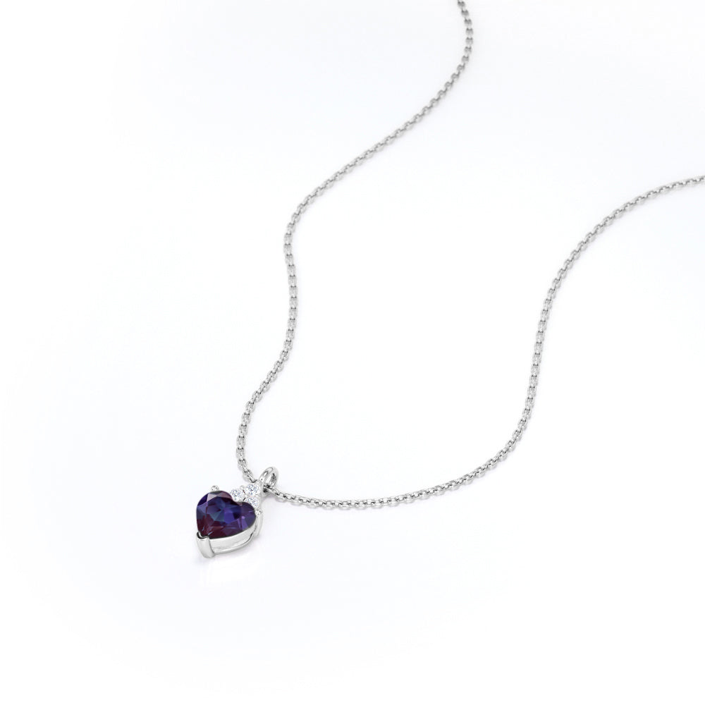 Delicate 1.05 Carat Heart Shaped Lab Created Alexandrite and Diamond Three Prong Pendant Necklace In White Gold For Her