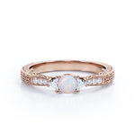 Delicate Four Prong 1.25 Carat Round Cut Fire Opal And Diamond Vintage Filigree Engagement Ring In Rose Gold