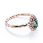 Delicate Minimalist 1.50 Carat Pear Shape Milky Dendritic Moss Green Agate and Diamond Floral Cluster Engagement Ring in Rose Gold