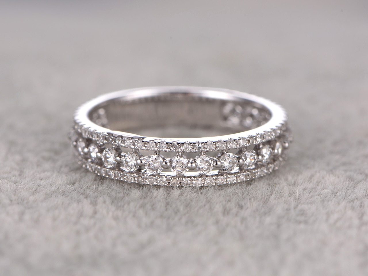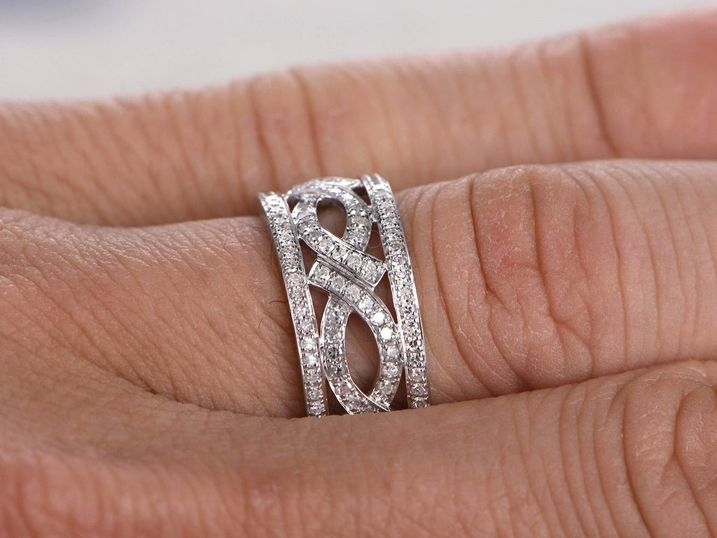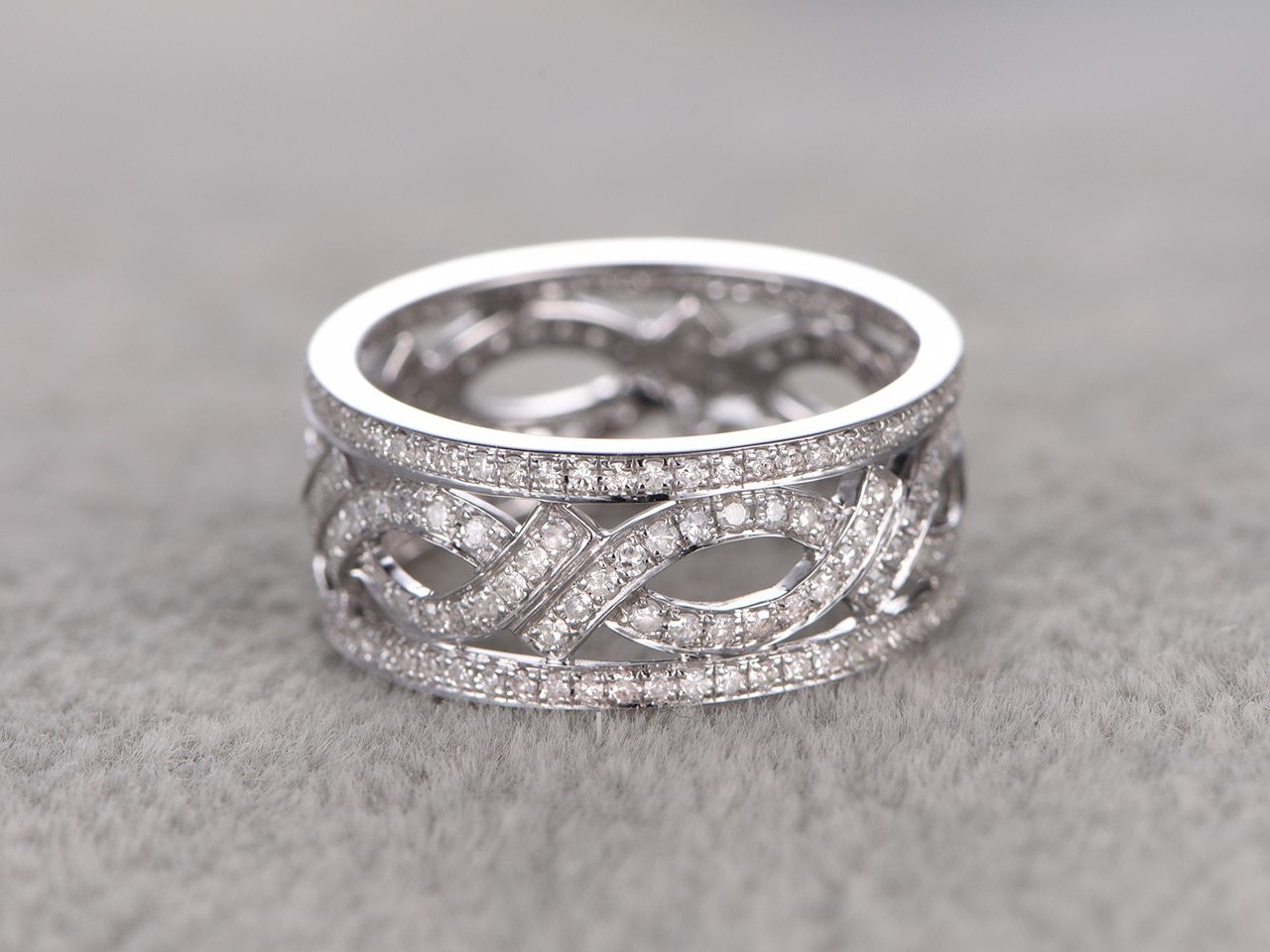 Designer 1 Carat Round cut Diamond Antique Wedding Ring Band in White Gold