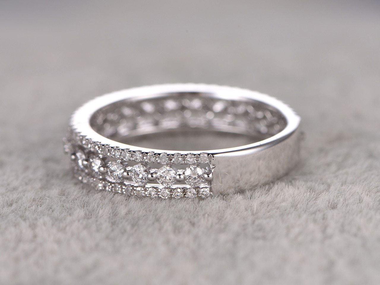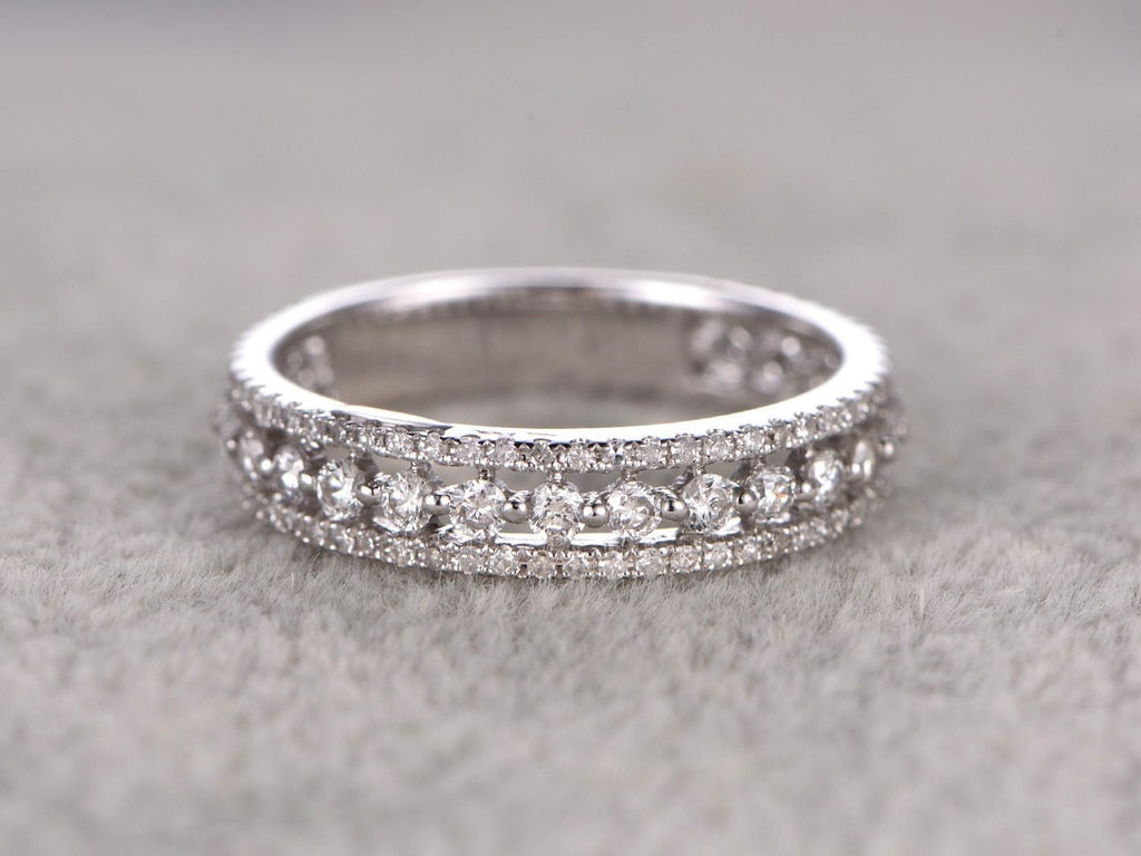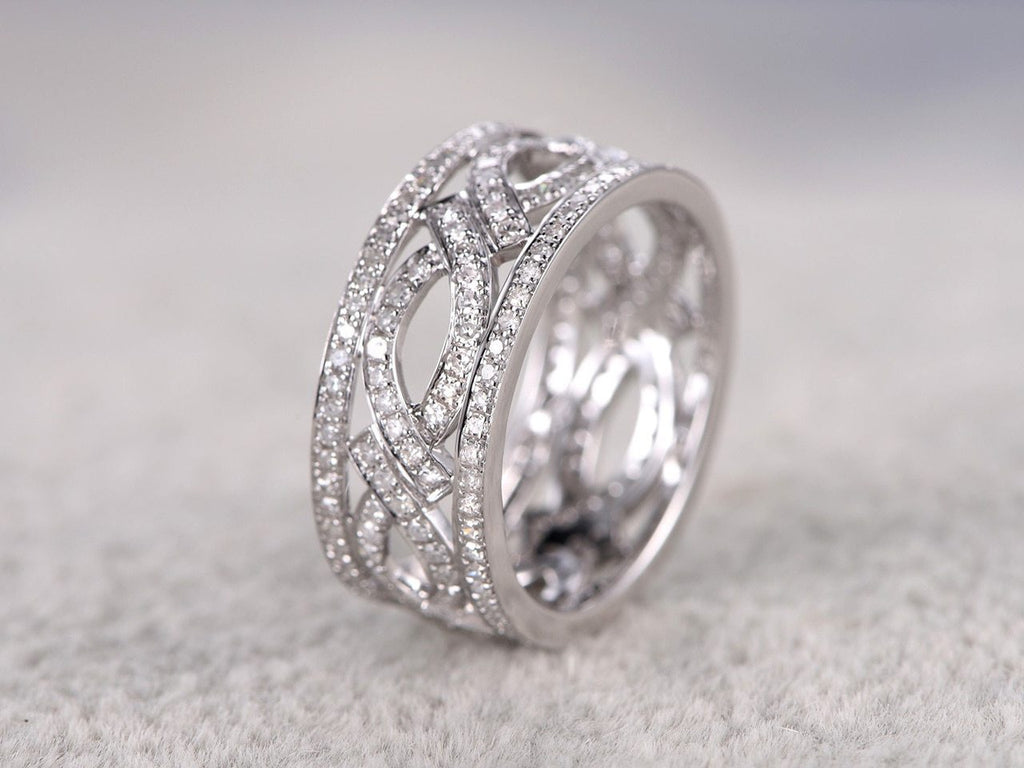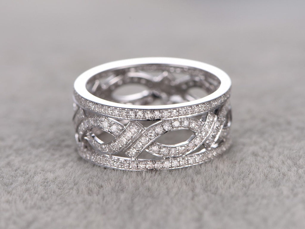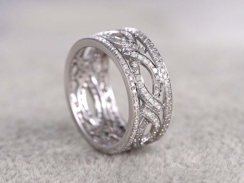 Designer 1 Carat Round cut Diamond Antique Wedding Ring Band in White Gold. The Perfect wedding band comes with delicate design, chic style and pristine glamour. As the band is handmade, we can customize it in either 10K, 14K or 18K White Gold, Yellow Gold or Rose Gold. The band comes with its own Free Elegant Jewelry Box. Your order also comes with a Jewelry certificate and 30 Days Full Refund policy. Please note that the 30 days refund date only starts from the date the order is delivered to you. The order will be delivered to you in 5 days once placed.