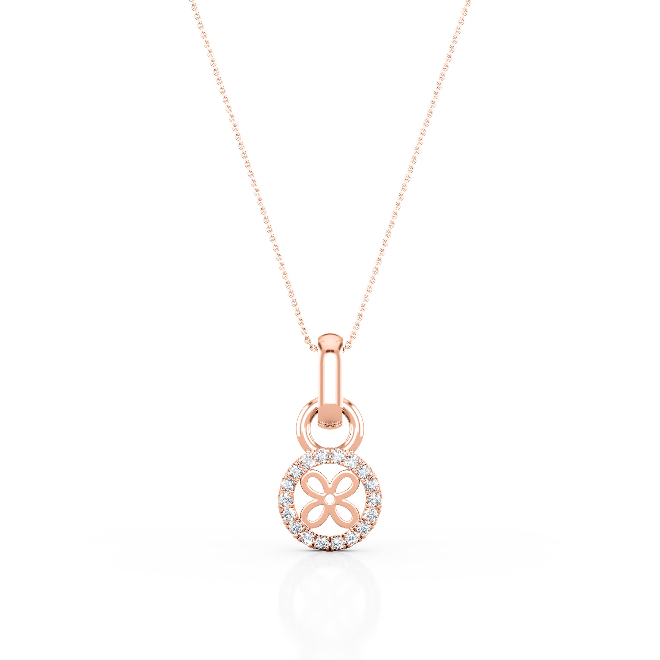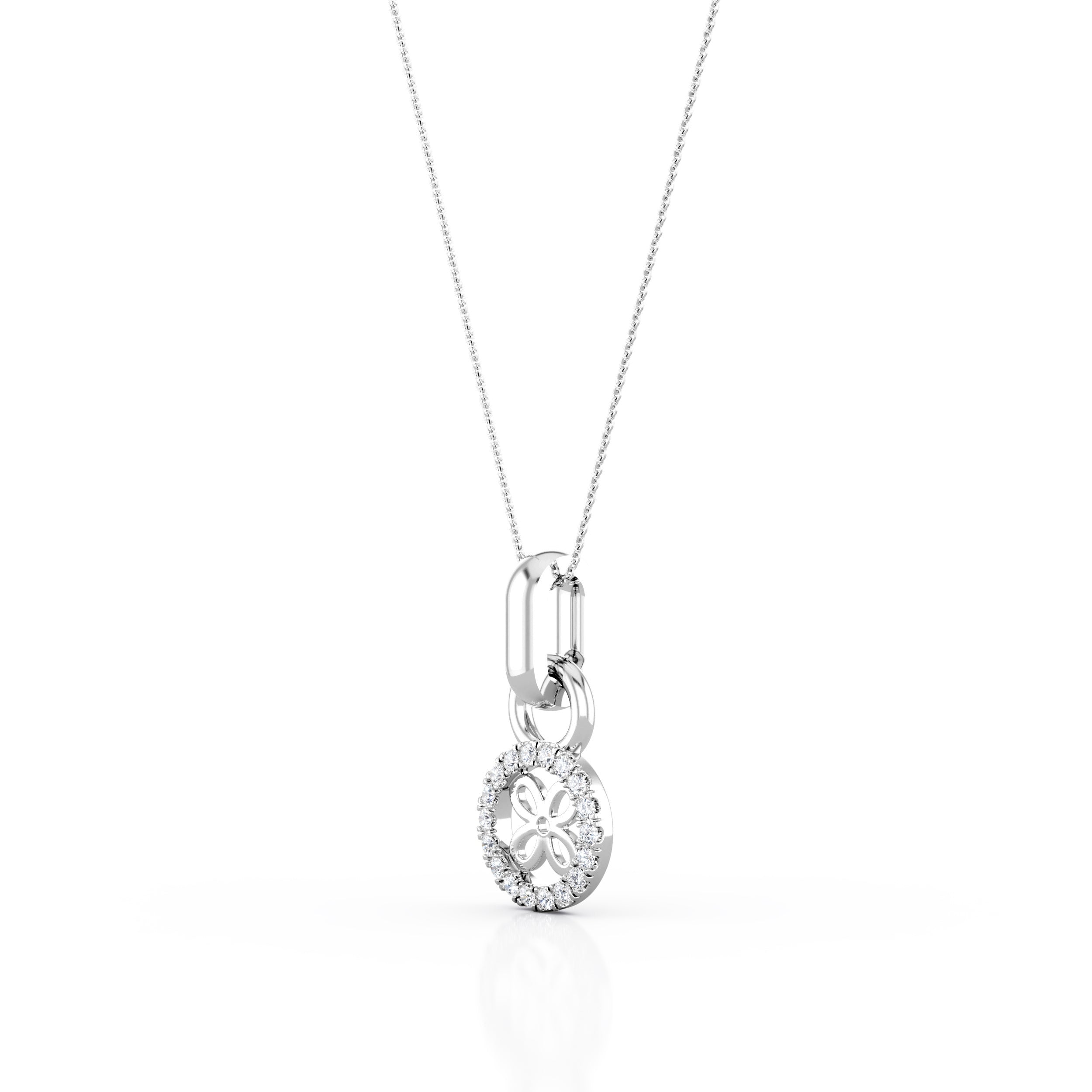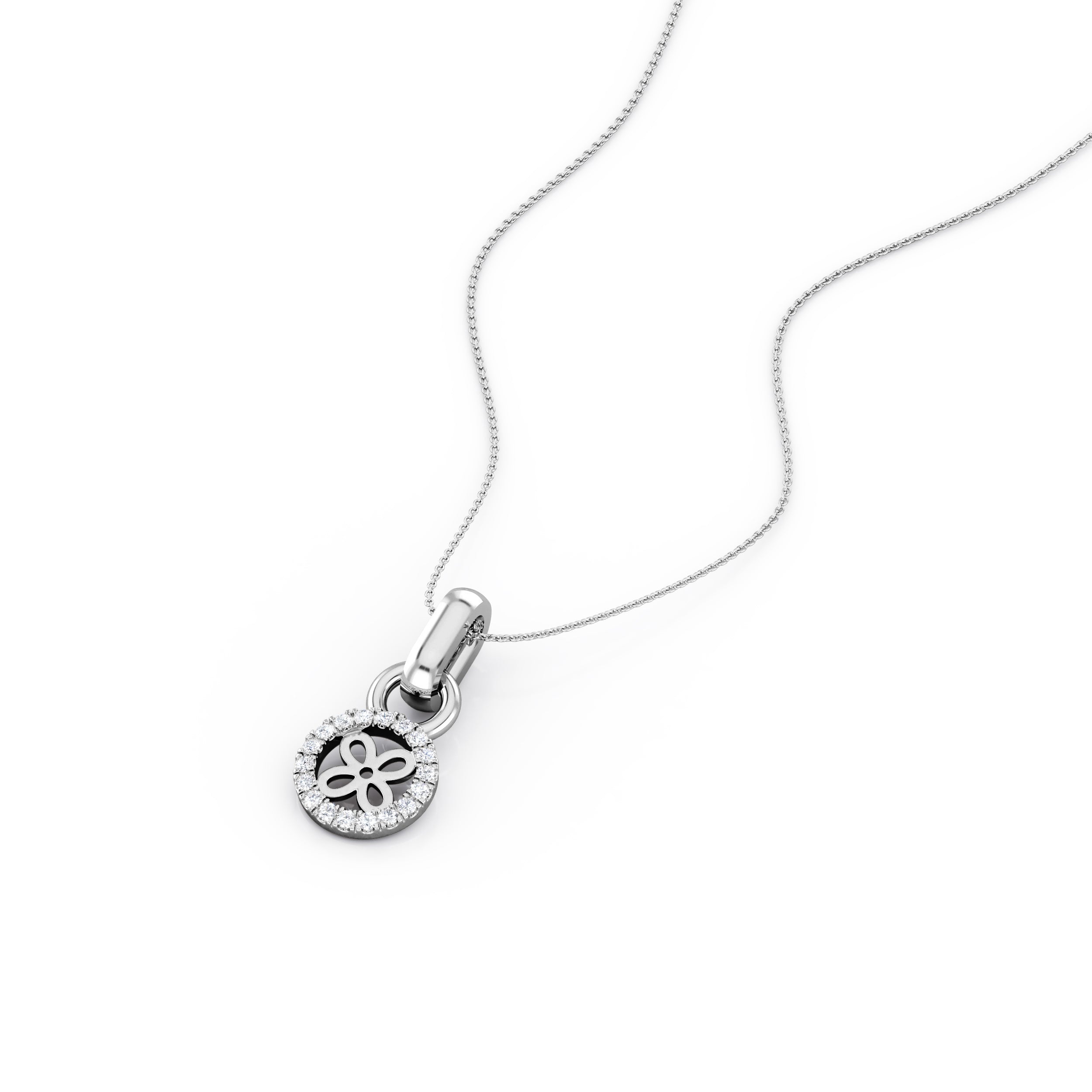 Designer Sunflower 0.15 CT TDW Round Diamond Fishtail Pave Halo Mini Pendant Necklace in White Gold