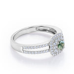 Double Halo 1.55 Carat Round Cut Green Moss Agate And Diamond Split Shank Engagement Ring In White Gold