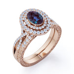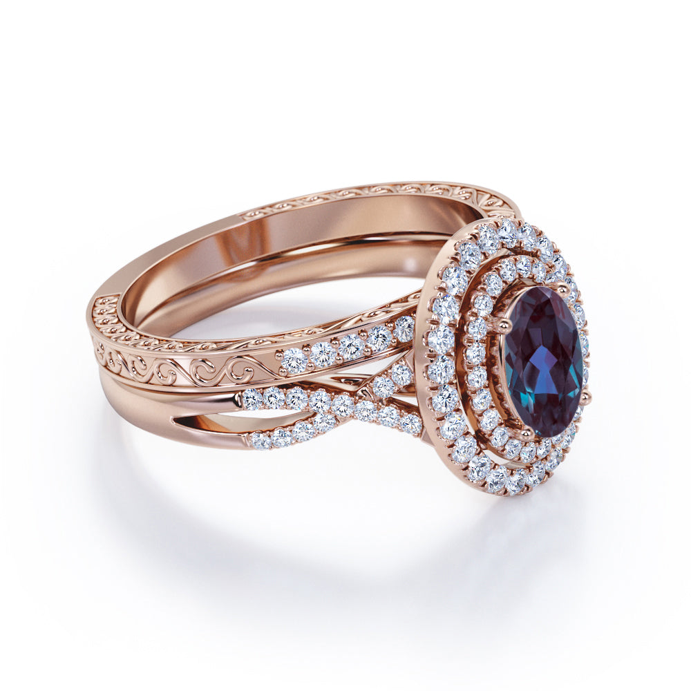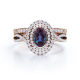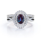 Double Halo 1.75 Carat Oval Cut Lab Created Alexandrite Infinity Wedding Ring Set In White Gold For Her