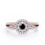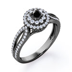 With this Double Halo Cluster 1.8 Carat Round-Shaped Black Diamond Split-Shaked Milgrain Pave Engagement Ring in White Gold, you can make your proposal day unforgettable. Handcrafted with care into a wonderful round cut by our lapidary expertise, this beautiful Black Diamond engagement ring is composed of a natural 1 carat round Black Diamond gemstone in the center with sparkling diamond side stones. Distinct and unusual, this gold Black Diamond ring for women is ideal for those who wish to express their charisma and uniqueness. This real Black Diamond ring for women is magnificent with its glory and brilliance and will be an unmistakable addition to any jewelry collection. Beautiful and affordable, this cheap engagement ring is stunning and inexpensive, thanks to its reasonable price. Our cheap engagement ring, the birthstone ring for the month of April, represents riches and extravagance and would make an excellent gift for friends or your better half. This affordable engagement ring can be customized, either in rose gold, white gold, black gold, or yellow gold, upon customer request. Let's show her how much you care by giving her this real Black Diamond ring for women.