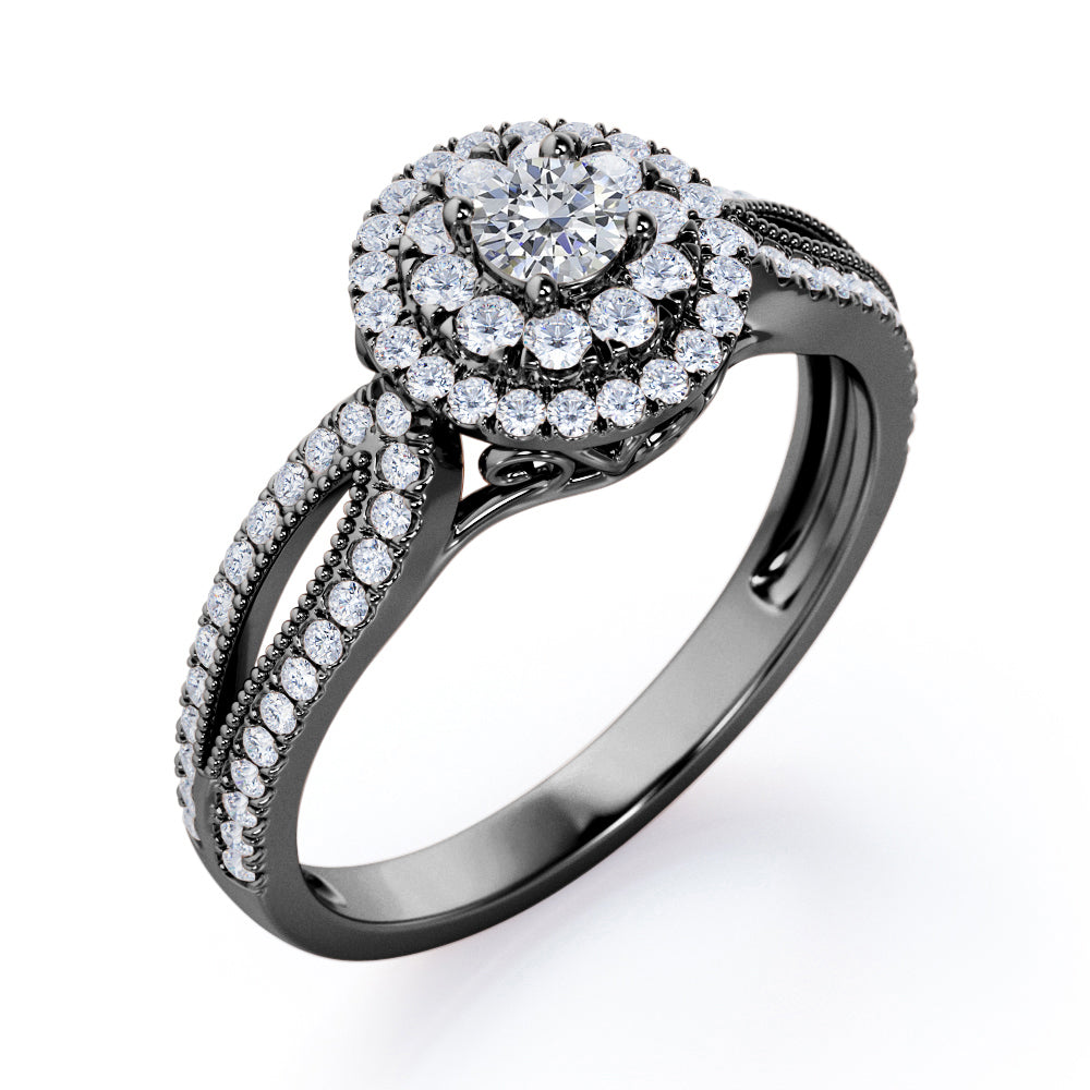 With this Double Halo Cluster 1.8 Carat Round-Shaped Moissanite and diamond Split-Shaked Milgrain Pave Engagement Ring in Rose Gold, you can make your proposal day unforgettable. Handcrafted with care into a wonderful round cut by our lapidary expertise, this beautiful Moissanite engagement ring is composed of a natural 1 carat round moissanite gemstone in the center with sparkling diamond side stones. Distinct and unusual, this gold Moissanite ring for women is ideal for those who wish to express their charisma and uniqueness. This real Moissanite ring for women is magnificent in its brilliance and clarity and will be an unmistakable addition to any jewelry collection. Beautiful and affordable, this cheap engagement ring is stunning and inexpensive, thanks to its reasonable price. Our cheap engagement ring, the birthstone ring for the fourth month, represents riches and extravagance and would make an excellent gift for friends or your better half. This affordable engagement ring can be customized, either in rose gold, white gold, black gold, or yellow gold, upon customer request. Let's show her how much you care by giving her this real Moissanite ring for women.