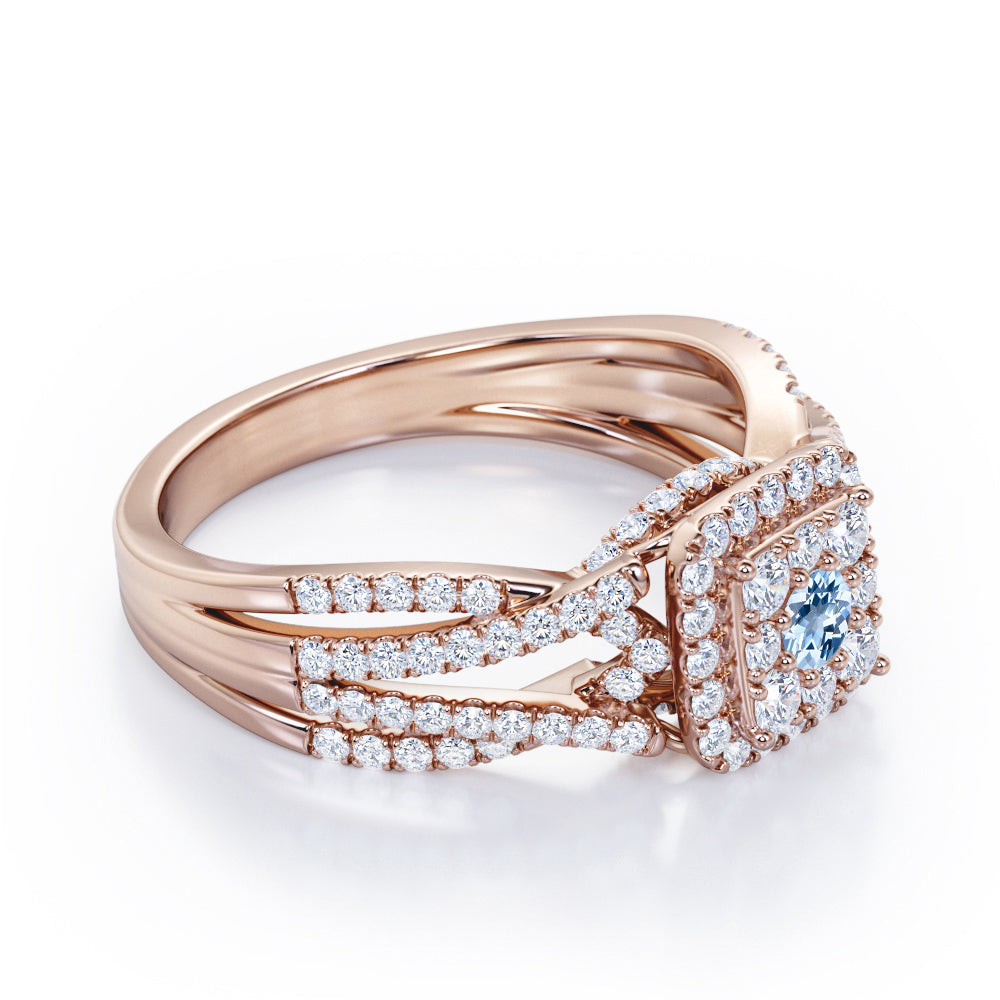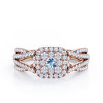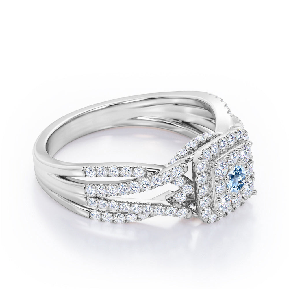 Double Infinity Split Shank - 1.4 Carat Round Shaped Aquamarine - Flush Cluster Halo Engagement Ring in White Gold