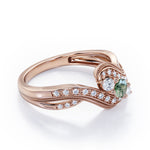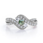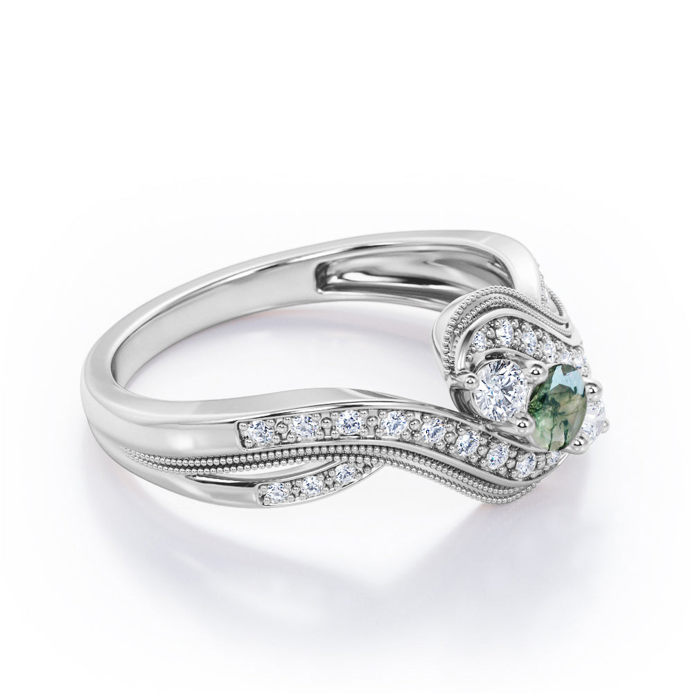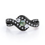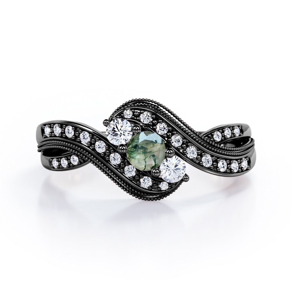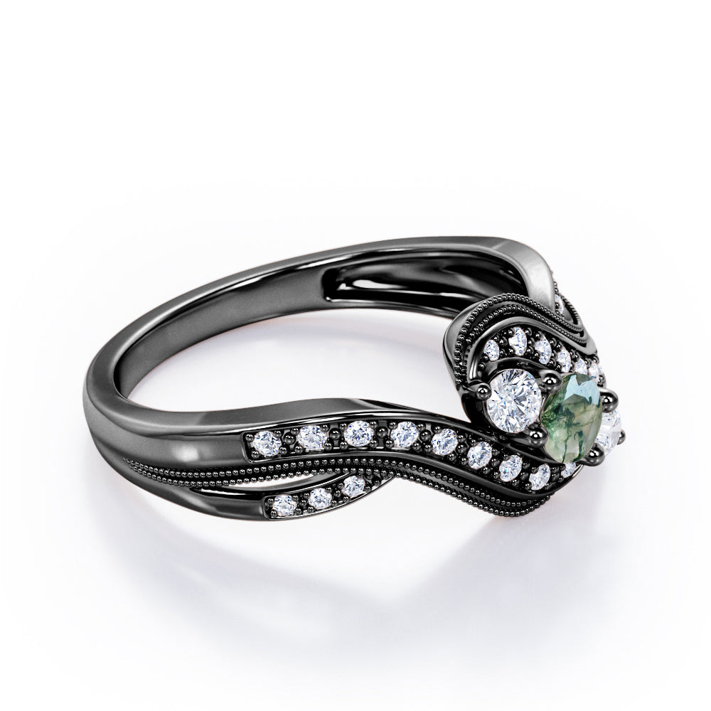 Double Milgrain Curve Infinity 0.7 carat Round Green Moss Agate and Moissanites Engagement Ring in Black Gold