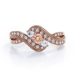Double Milgrain Curve Infinity 0.7 carat Round Morganite and Moissanites Engagement Ring in Rose Gold