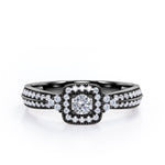 Double Pave Channel 1.5 Carat Round-Shaped Moissanite and diamond Halo Cluster Engagement Ring in Black Gold