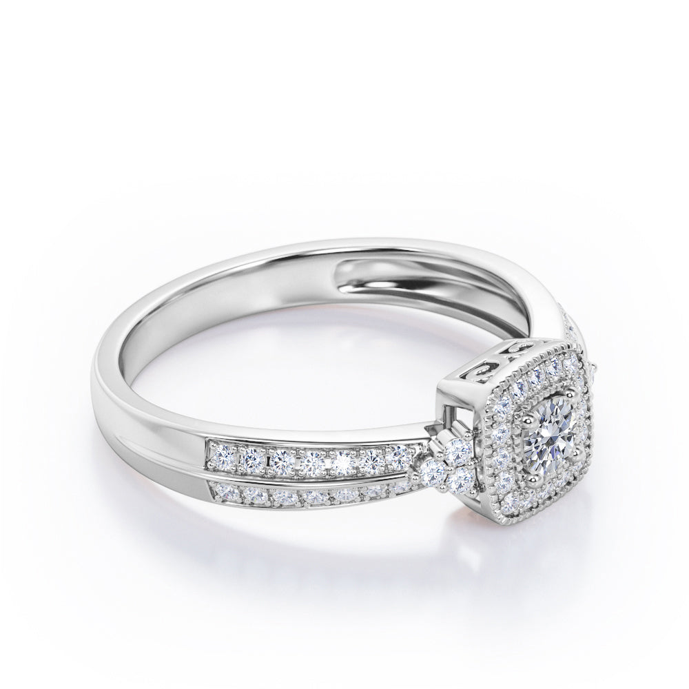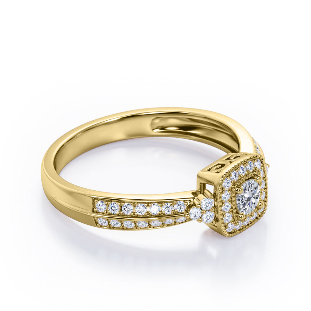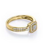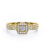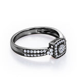 With this Double Pave Channel 1.5 Carat Round-Shaped Moissanite and diamond Halo Cluster Engagement Ring in Black Gold, your better half will easily stand out from the crowd. Hand-cut with deftness into a lovely shape round cut by our most talented jewelers, this gorgeous Moissanite promise ring for her consists of a natural 1 carat round shaped moissanite stone in the center and is enhanced with 0.5 carat of sparkling diamonds on the side for a total carat weight of 1.5 carat. For those looking for something a little out of the ordinary, this real Moissanite wedding ring is an excellent choice. This gem engagement ring is magnificent in its brilliance and clarity and will be an unmistakable addition to any jewelry collection. Beautiful and affordable, this cheap wedding ring is stunning and inexpensive, thanks to its reasonable price. This wedding anniversary ring a great choice. Also, this cheap real Moissanite ring can be customized, either in white gold, rose gold, yellow gold, black gold, upon customer request. Let's show her how much you care by giving her this gold band with Moissanites, and she will never regret it.