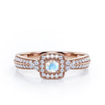 Double Pave Channel 1.5 Carat Round-Shaped Moonstone and diamond Halo Cluster Engagement Ring in Rose Gold