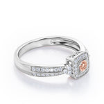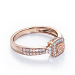 With this Double Pave Channel 1.5 Carat Round-Shaped Morganite and diamond Halo Cluster Engagement Ring in White Gold, your better half will easily stand out from the crowd. Hand-cut with deftness into a lovely shape round cut by our most talented jewelers, this gorgeous Morganite promise ring for her consists of a natural 1 carat round shaped Morganite stone in the center and is enhanced with 0.5 carat of sparkling diamonds on the side for a total carat weight of 1.5 carat. For those looking for something a little out of the ordinary, this real Morganite wedding ring is an excellent choice. This gem engagement ring is magnificent with its soft pink hue and will be an unmistakable addition to any jewelry collection. Beautiful and affordable, this cheap wedding ring is stunning and inexpensive, thanks to its reasonable price. This wedding anniversary ring a great choice. Also, this cheap real Morganite ring can be customized, either in white gold, rose gold, yellow gold, black gold, upon customer request. Let's show her how much you care by giving her this gold band with Morganites, and she will never regret it.