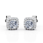 Double Prong 0.60 CT TDW Cushion Cut Certified Lab Diamond Micro Pave Halo Stud Earrings in White Gold