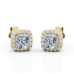 Whether it is for yourself or your special someone, this Double Prong 0.60 CT TDW Cushion Cut Certified Lab Diamond Micro Pave Halo Stud Earrings in White Gold will complete any styles. This elegant studs displays an approximate .25 carat cushion cut natural white Certified Lab Diamond on each side, surrounded by .10 carat side Certified Lab Diamonds, for a total 0.60 carat. All our Certified Lab Diamonds are I-J (near colorless) in color and I1-I2 in clarity. This earrings can be customized to either Rose Gold, White Gold, Yellow Gold or Black Gold. Also, it can be made with 18k Gold over Silver, 10k Gold, 14k Gold or 18k Gold. All our jewelry are precisely handmade to order by our experienced jeweler. Made with love, deliver to you with care. All order comes with satisfaction guarantee policy. If your are not satisfied with your purchase, you can request a refund within 30 days upon receipt of the item without question asked. As unique as you are, create your own special pieces of jewelry. Its brilliance and sparkle compliment any styles of wearers. Easy to wear, its simple but classy design befit any style and looks. It is an ideal gift for every special events, namely, Birthday, Anniversary, Valentine's, Mother's Day, Christmas, etc. Entirely handcrafted, it delivers the best brilliance and sparkle. Shining bright, this pair of earrings will make wearer feel like they were on cloud nine. Customized, Personalized, The sublime gift for your loved one.