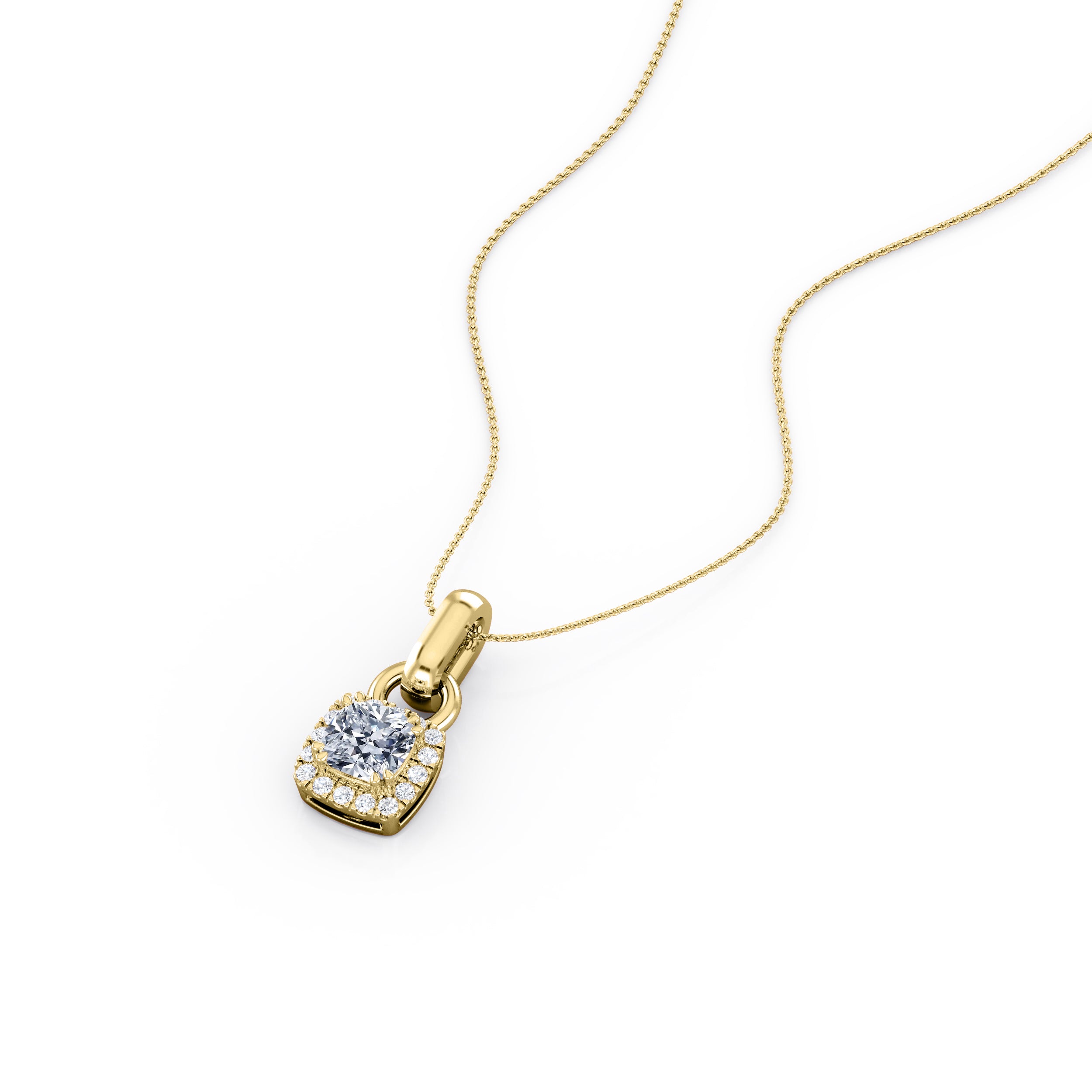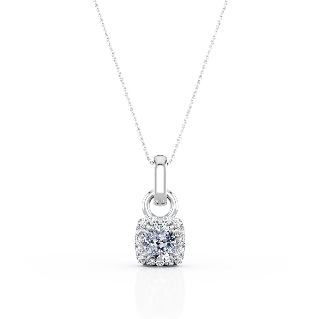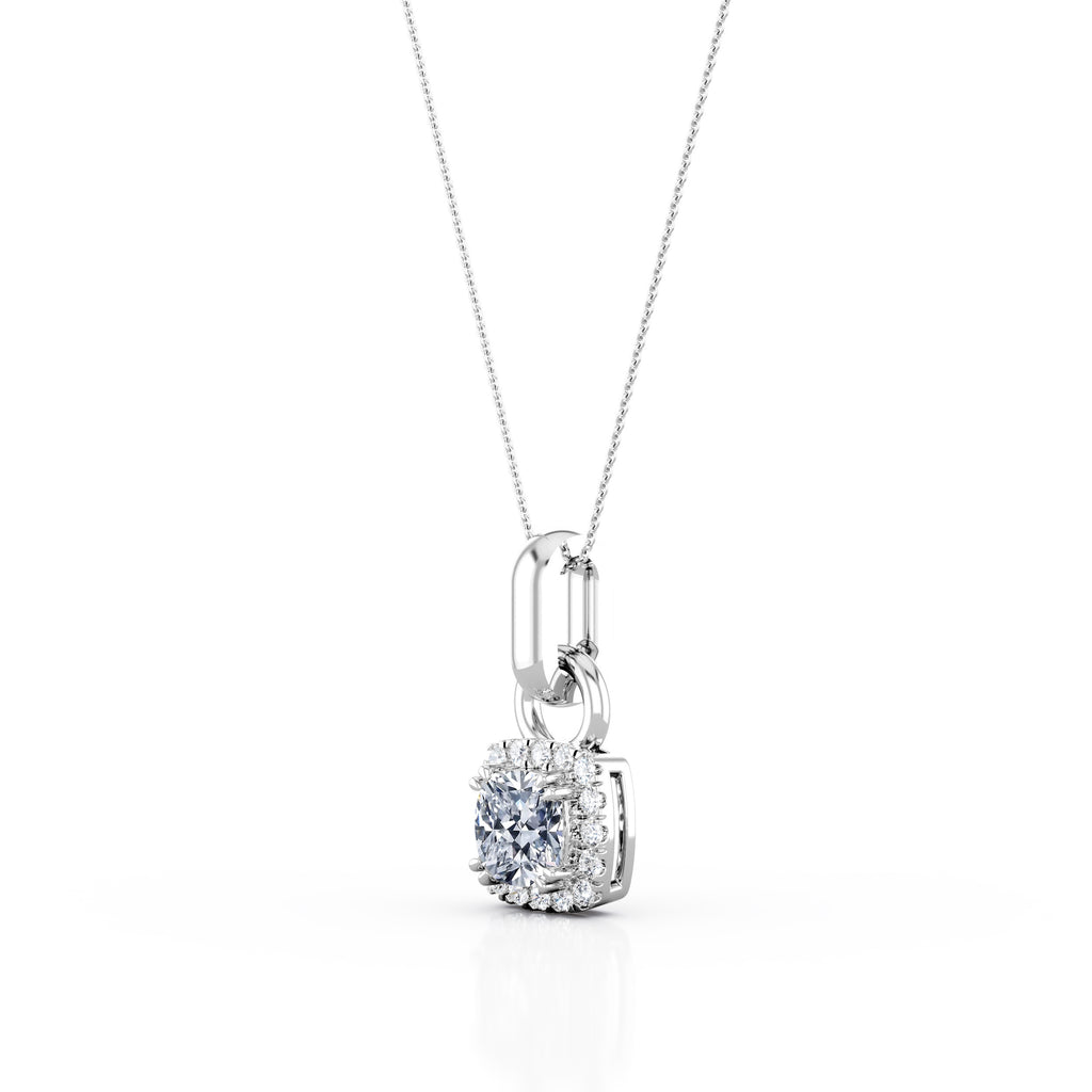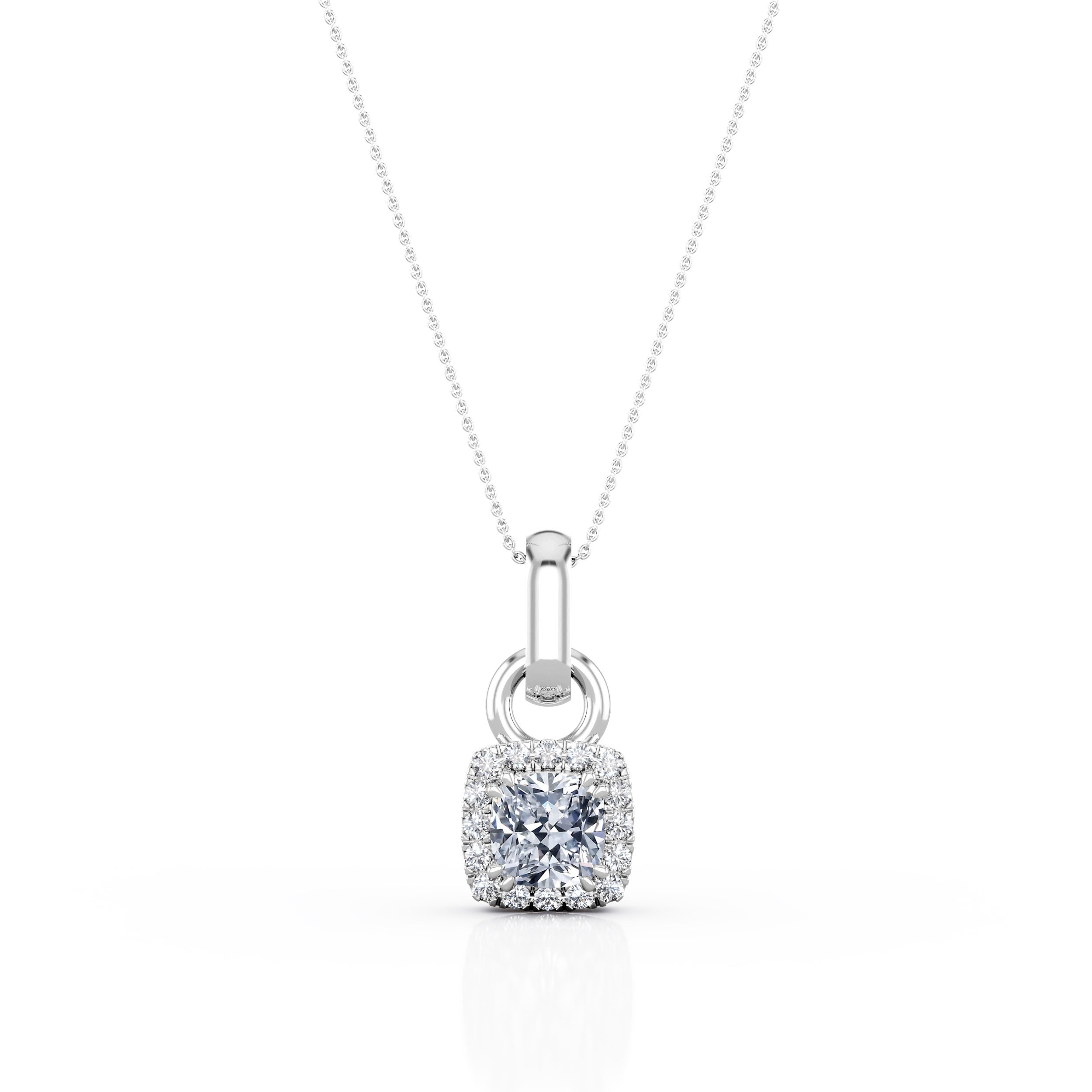 Double Prong 0.85 Carat Cushion Cut Certified Moissanite and Diamond Frame Halo Stud Pendant Necklace in Rose Gold
