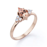 Edgy 0.55 carat Kite Morganite and Moissanite Engagement Ring in Rose Gold