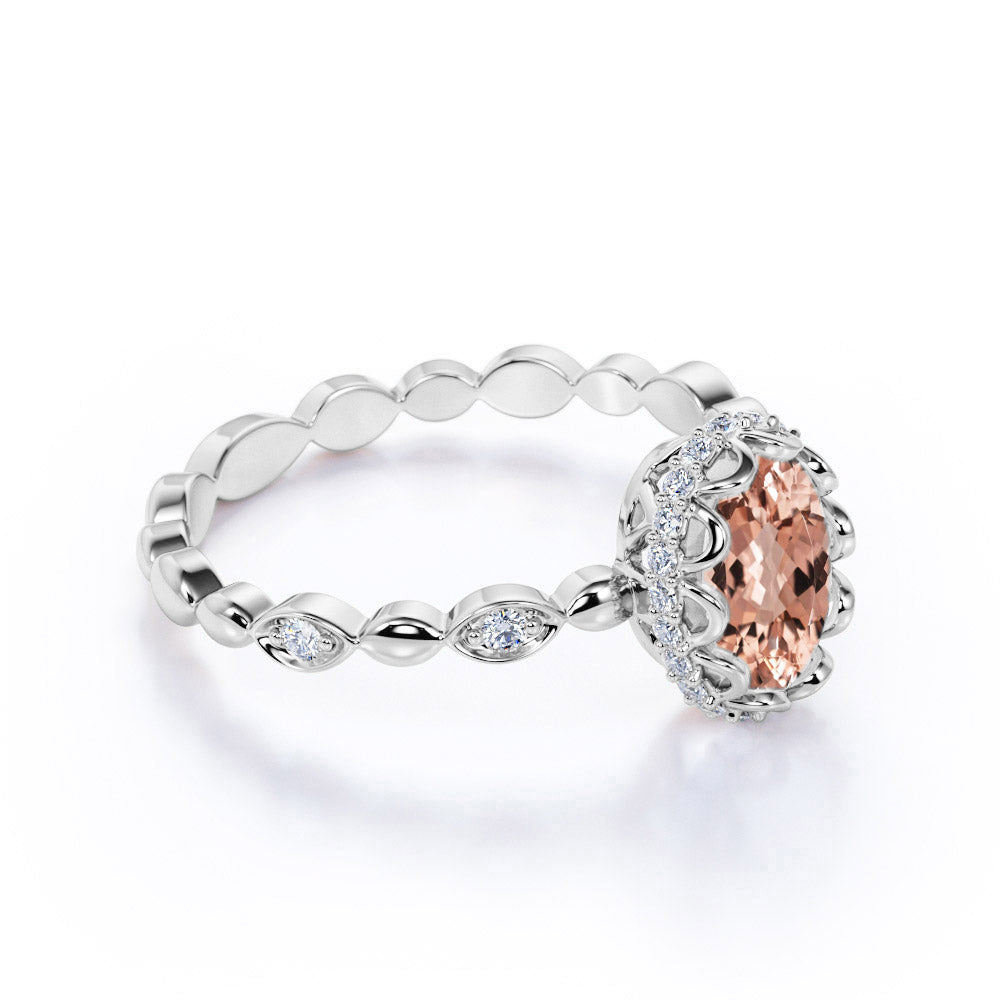 Elegant 1.25 Carat Oval Cut Peach Morganite and Diamond Engagement Ring in 10k Rose Gold for Women