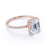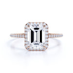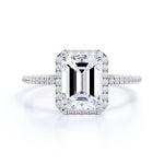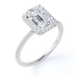 Pave Set 1.5 Carat Emerald Moissanite Halo Engagement Ring
