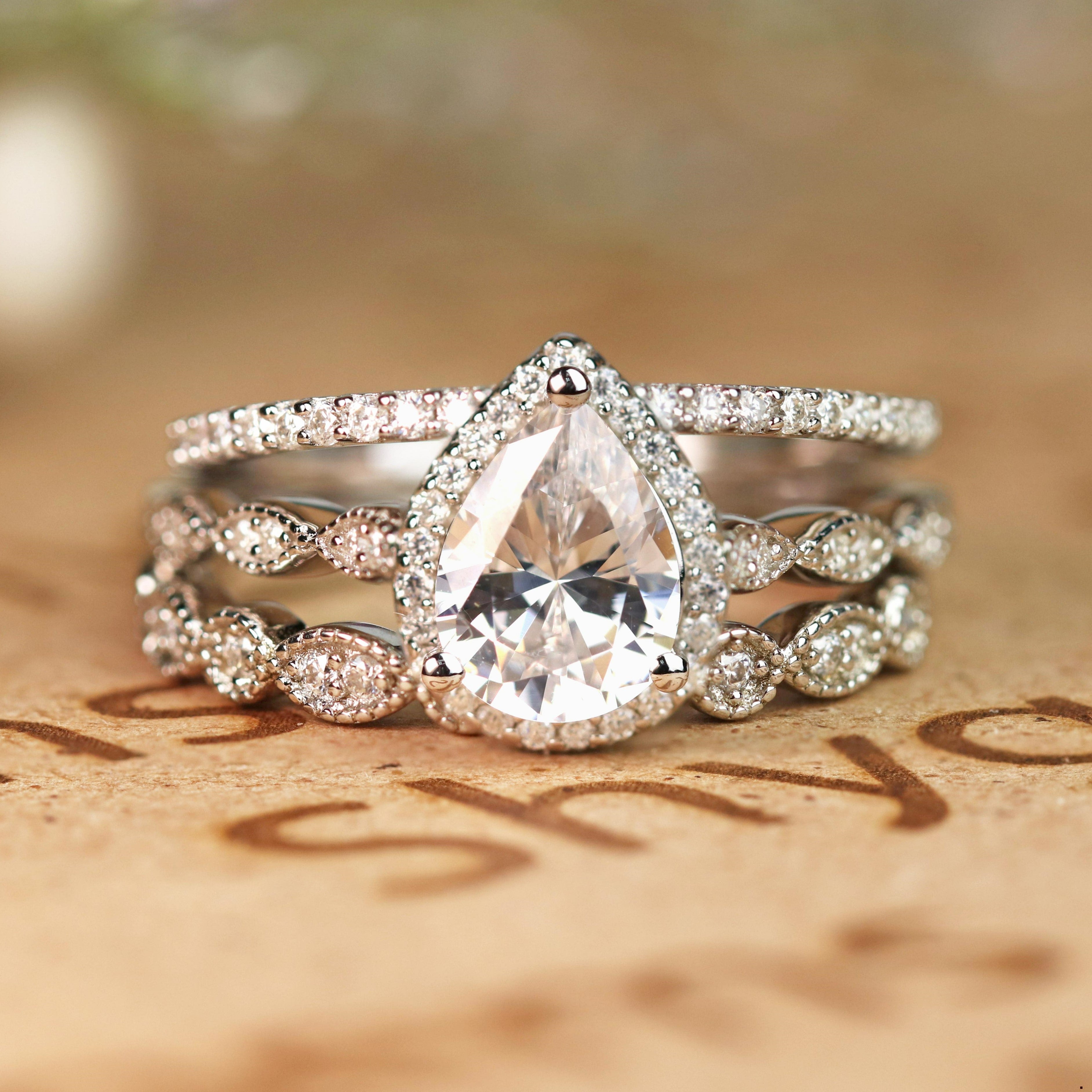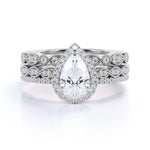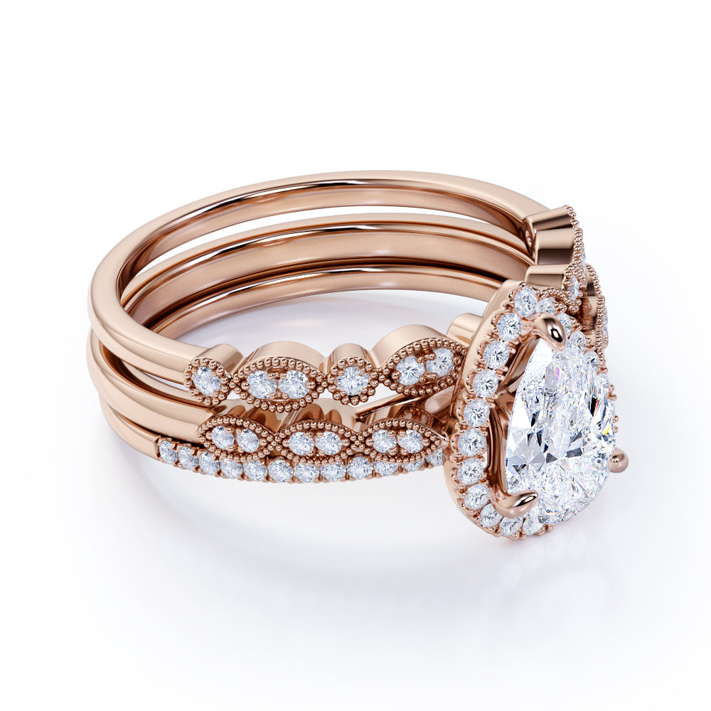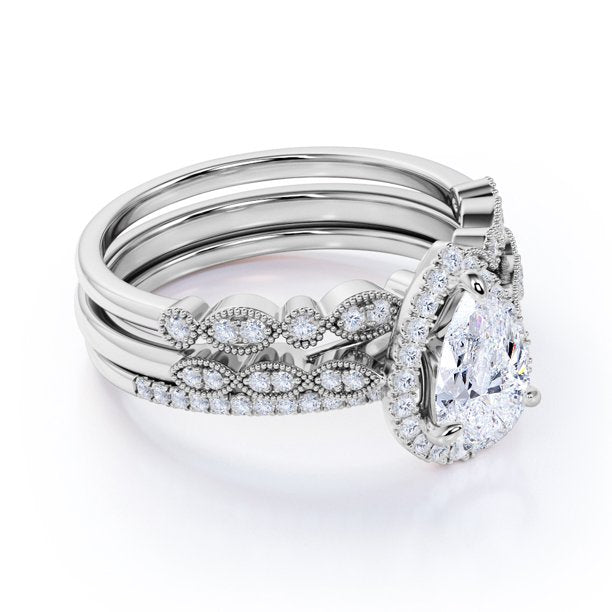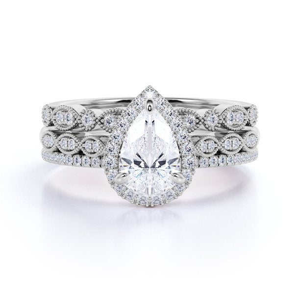 Halo 1.5 Carat Moissanite Milgrain Trio Ring Set