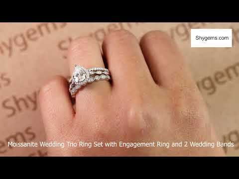 Elegant 1.5 Carat Real Moissanite Wedding Trio Ring Set with Engagement Ring and 2 Wedding Bands in 18k Gold Over Silver. The bridal wedding ring is made with real and high quality Moissanites that can be a perfect alternative to diamond rings as moissanites have almost the same durability and quality as with diamonds that will last for a lifetime. The colorless white moissanite is of highest clarity and the moissanite engagement ring is made on 18k Gold over silver. The very Beautiful engagement ring, comes with the real and high quality moissanites all hand crafted beautiful to make the perfect Moissanite engagement ring for her. The moissanite bridal wedding ring set consist of main moissanite engagement ring and 2 matching wedding ring bands. Your beautiful jewelry ring comes with a 30 days full refund policy. The beautiful Moissanite wedding engagement ring set for women will make the perfect gift for her, whether you are looking for engagement, valentine's day, mothers day or anniversary gift.
