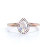 1.50 Carat Pear Shaped Moonstone Wedding Ring in Rose Gold - Vintage Moonstone Ring