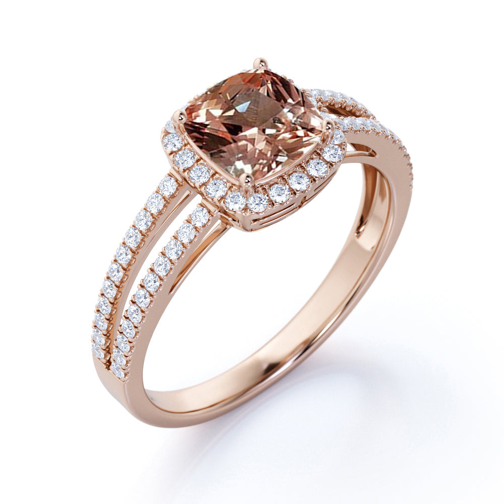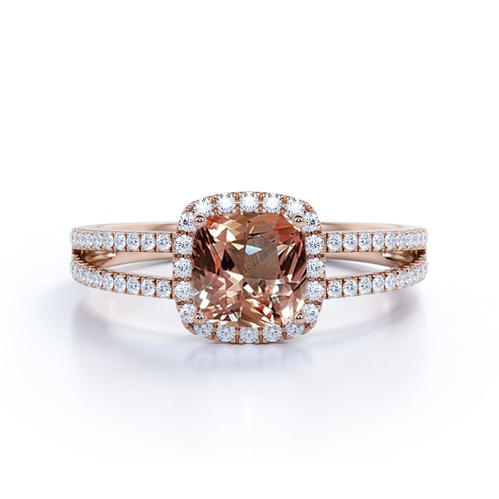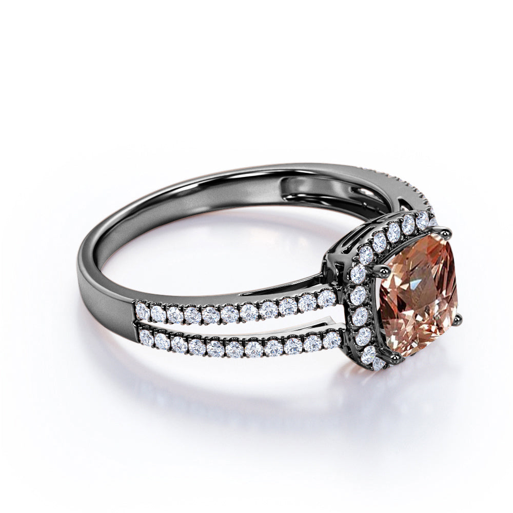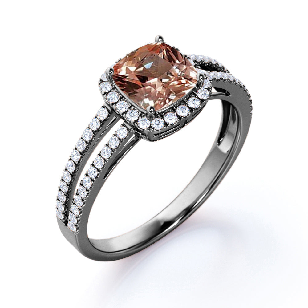 Uniqueness makes you stand out and this unique morganite ring is perfect for you. This morganite ring represents your love, affection and towards an infinite life together. This morganite ring features an approximately 1 carat cushion shape natural morganite, surrounded by .50 carat authentic diamond accent, for a total weight of 1 carats.