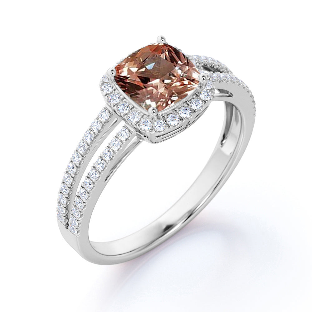 Elegant 1.50 Carat Cushion Cut Dark Peach Morganite and Diamond Channel Engagement Ring in White Gold
