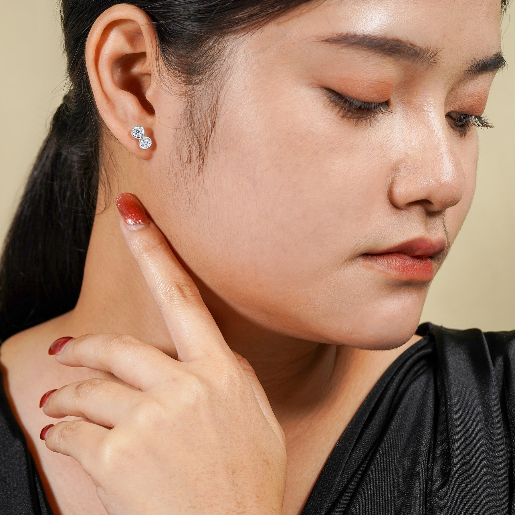 Discover the elegance and allure of Elegant 1 Ct Round cut CVD Lab Grown Certified Lab Diamond Infinity Loop Stud Earrings in 18K White Gold Plating over Silver for Women, crafted with precision in sterling silver and adorned with an 18K White gold finish. These exquisite earrings feature lab-grown CVD Certified Lab Diamonds, each side weighing 0.5 carat, set in a unique infinity loop design that symbolizes endless love and connection. These earrings are not only a testament to timeless style but also reflect a commitment to environmental sustainability. The CVD Certified Lab Diamonds are ethically produced, offering a brilliant, guilt-free alternative to mined Certified Lab Diamonds at a fraction of the cost. Ideal for those who appreciate luxury but demand ethical sourcing, these earrings make a perfect gift for anniversaries, weddings, or as a special treat to yourself. They combine the best of modern jewelry trends—lab-grown Certified Lab Diamonds, eco-friendly, and hypoallergenic—with classic elegance.