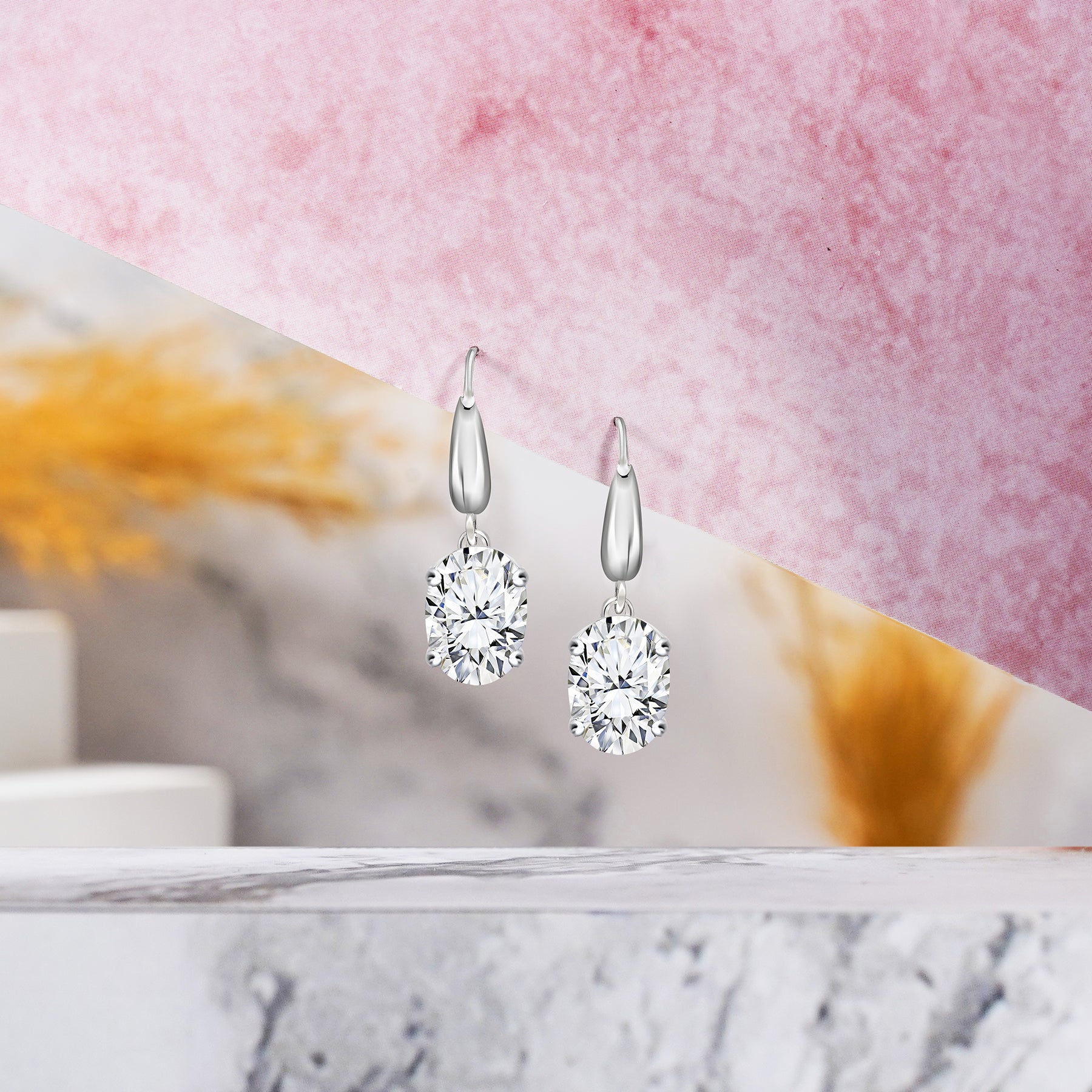 Elegant 2 Carat Oval Cut Moissanite Dangle Earrings in 18K White Gold over Silver