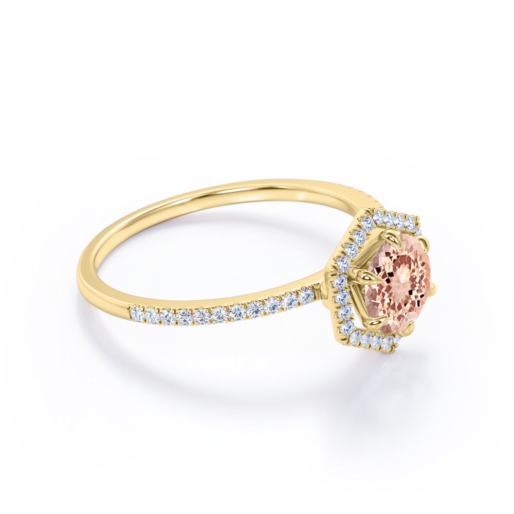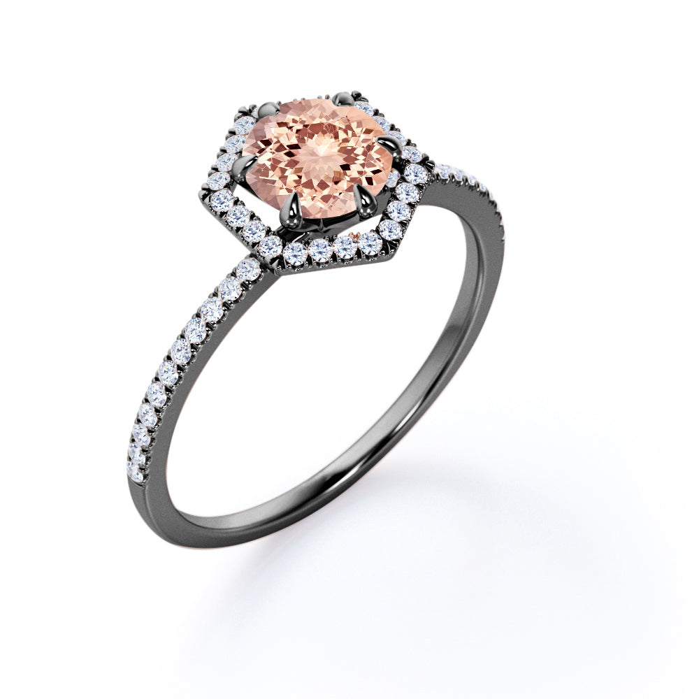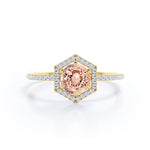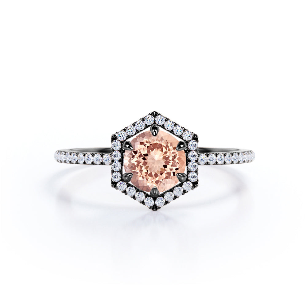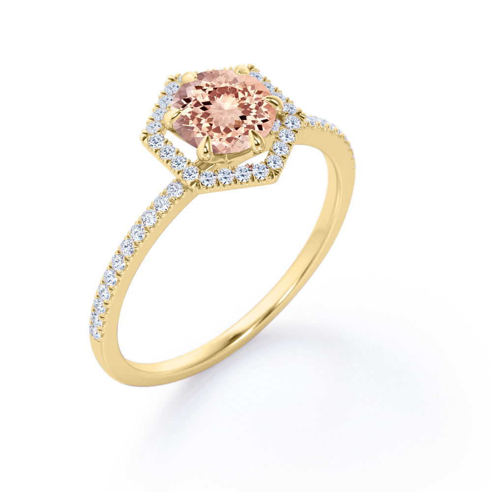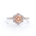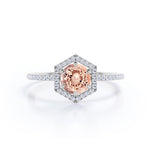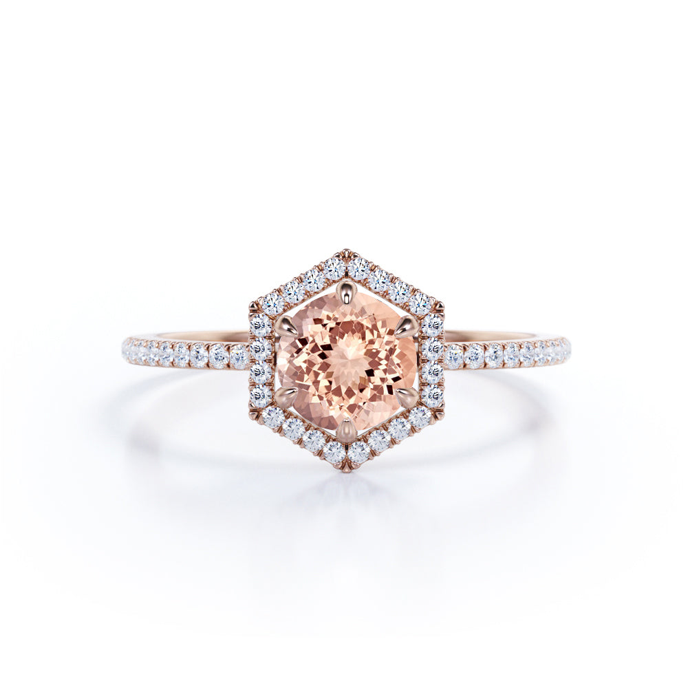 Elegant Hexagon Style 1.75 Carat Round Orange Peach Morganite and Diamond Engagement Ring in Rose Gold
