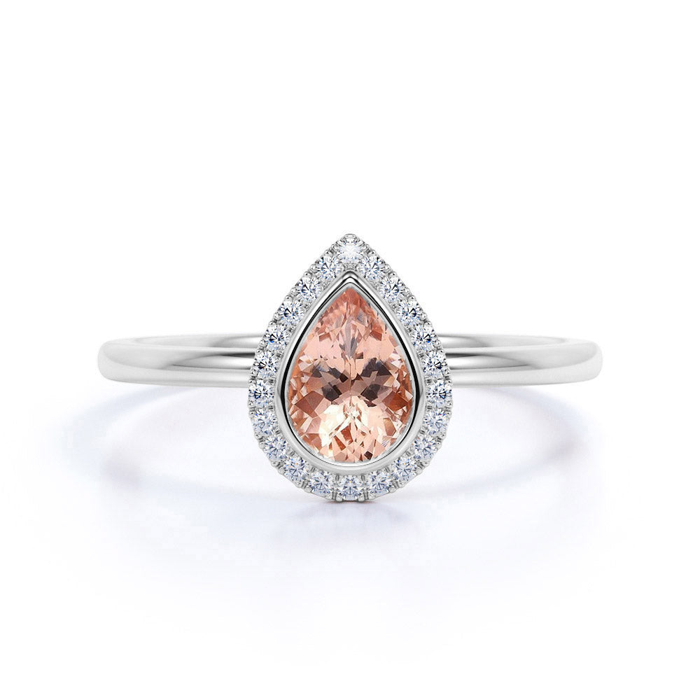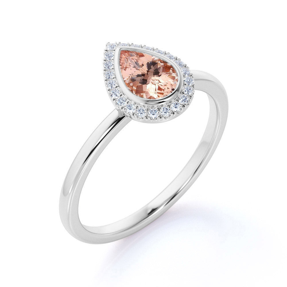 Elegant Pave 1.50 Carat Pear Shape Morganite and Diamond Halo Engagement Ring in White Gold