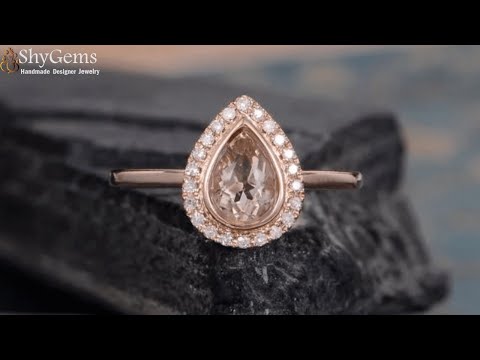 - The Morganite and Diamond Halo Engagement Ring can be made in either 10k, 14k, or 18k real solid gold and in any color between Rose, White or Yellow.