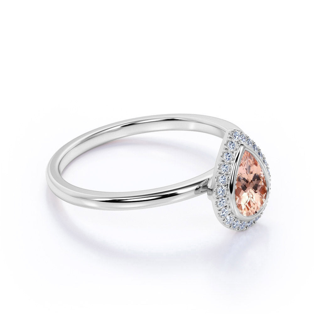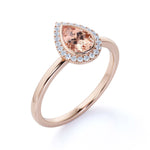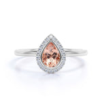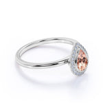 Elegant Pave 1.50 Carat Pear Shape Morganite and Diamond Halo Engagement Ring in White Gold