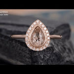 This is an elegant 1.50 Carat Pear Shape Morganite and Diamond Halo Engagement Ring in White Gold. The pave design engagement ring is made with natural morganite, real diamonds and on real gold.